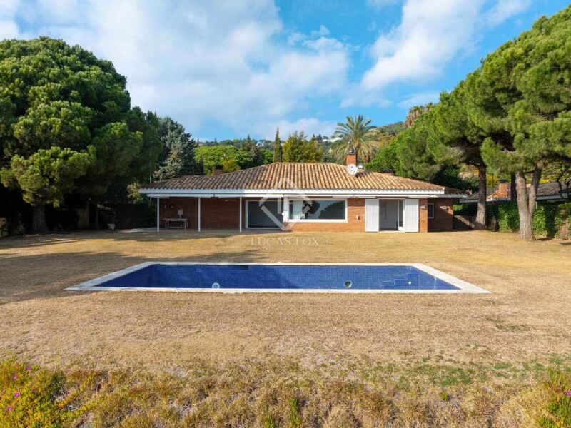 Located in the prestigious Supermaresme residential area, this exceptional villa offers an unparalleled living experience, combining elegance, comfort, and spectacular sea views. Set on a generous 1,818 m² flat plot, this stunning home spans 357 m² of built space, all on one level, ensuring a seamless and practical layout that enhances both comfort and functionality. Upon entering, you are welcomed into bright and airy interiors, where large windows frame the picturesque surroundings and flood the spaces with natural light. The property boasts four spacious en-suite bedrooms, each with its own private bathroom, along with an additional single bedroom and a service room with its own shower. A guest toilet further enhances the convenience of this well-designed home. The heart of the villa is its impressive living and dining area, where an elegant fireplace creates a warm and inviting atmosphere. The space connects effortlessly with the outdoor areas, allowing for a perfect blend of indoor and outdoor living. The fully equipped kitchen, complete with a pantry and a dedicated laundry area, provides both functionality and style. Stepping outside, the beautifully landscaped garden offers complete privacy and tranquility. A magnificent covered porch extends the living space outdoors, making it an ideal spot to enjoy the Mediterranean climate throughout the year. The expansive pool area, with its breathtaking sea views, provides the perfect setting for relaxation and entertaining. Designed for modern living, the villa is oriented to the southeast, ensuring optimal sunlight throughout the day. A private garage with space for two cars, along with an additional outdoor parking area for two more vehicles, adds further convenience. Supermaresme is renowned as one of the most exclusive communities in Catalonia, offering 24-hour security, private sports facilities, and proximity to golf courses, marinas, and top-tier restaurants. Just 40 minutes from Barcelona and 90 minutes from the French border, this home is a true sanctuary of luxury and privacy, perfectly positioned for those seeking an exceptional lifestyle. Please contact us for further information.