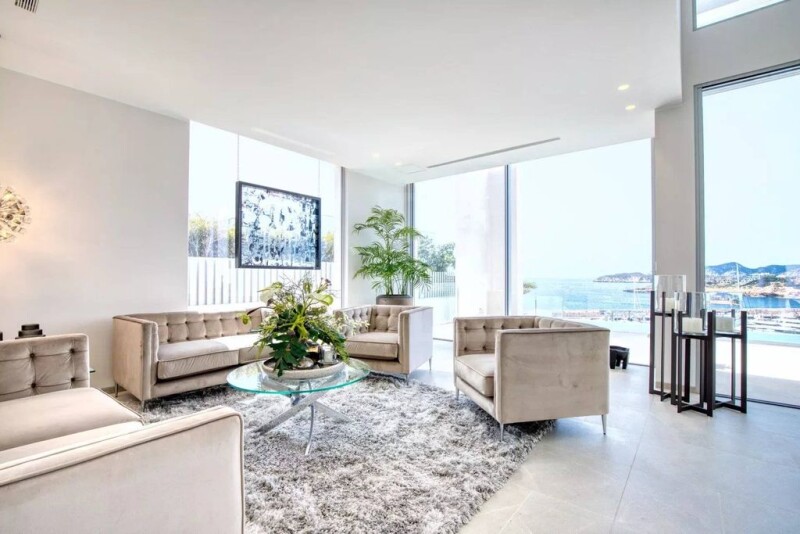 Modern villa located in Santa Ponsa with views sea views The newly completed villa sits on an 890m² plot, providing breathtaking views of the Port Adriano marina. Spanning 615m², this exceptional property features four spacious bedrooms and four elegant bathrooms. The villa boasts a beautifully designed open-plan living and dining area with a modern open kitchen, creating a seamless flow to the pool area with a generous 100m² pool terrace, perfect for relaxing or entertaining. Another standout feature is the 120m² rooftop terrace, offering panoramic views of the surroundings and the sea. This villa leaves nothing to be desired in terms of location, amenities, quality, and design. It is equipped with top-of-the-line features such as a home cinema, a fully equipped fitness room, and stunning design elements with glass accents throughout, further enhancing the villa's contemporary elegance.