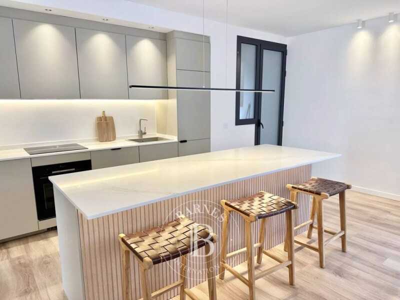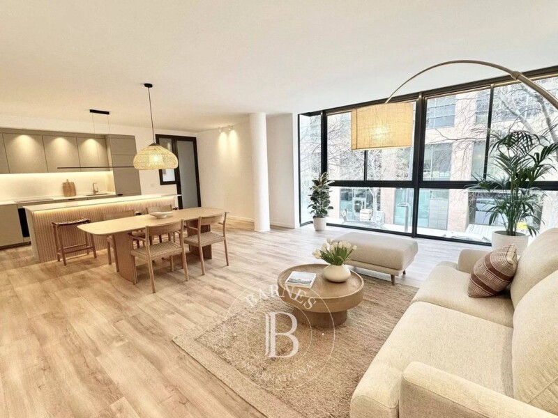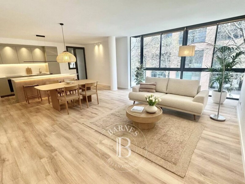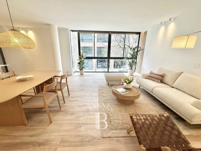Barnes Barcelona presents this fully renovated 145 m² apartment in Vila Olímpica, just a few steps from the beach and the Olympic Port. The neighborhood offers a pleasant atmosphere, with restaurants and green spaces. This spacious apartment features a bright living room, an open kitchen with a central island and high-end Bosch appliances, perfect for social gatherings. The private area includes three bedrooms, with the master suite offering a private bathroom and views of the pool. The two bathrooms are equipped with modern fixtures, and there is also a laundry area and a domotic climate control system. The balcony overlooks the private 3,300 m² garden, with two pools and a children's play area. A perfect place to relax. Located on the first floor of a modern building, this apartment ensures privacy and tranquility, with only two residences per floor. The parking with direct access to the property is an added bonus (not included in the price). Contact us to arrange a visit to this beautiful property.