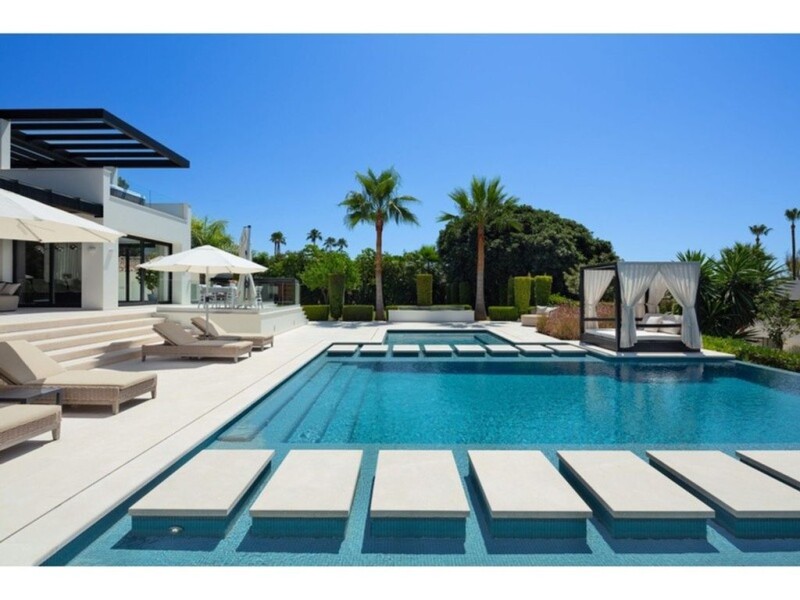 Exquisite villa showcasing symmetrical modern architecture, refined interiors and a prime location in the coveted area of La Cerquilla in Nueva Andalucia. While embracing a contemporary design, this property pays homage to the traditional Andalusian- style villas of Southern Spain with its white exteriors and roof tiles, complemented by black beams adorning the terraces. The meticulously maintained garden, enveloped by lush trees, encompasses the terrace area of the property. The ample terraces cater to alfresco dining and relaxation, ideal for those who enjoy hosting or the open air. Additionally, there is a stunning guest apartment on the garden level with its own terrace, doubling as a perfect setting for delightful outdoor dinners and barbecues, as this area also offers a covered outdoor kitchenette. Spanning multiple levels, the terrace’s lower level showcases a captivating infinity pool, accompanied by two cozy lounge beds that overlook the adjacent golf course. A submerged seating area connected to the pool further enhances the space. Within the property, sophistication and modern elegance enhance the interiors. A neutral color palette adorns the space, subtly complemented by carefully selected decorative accents that infuse hints of color The ground floor seamlessly merges indoor and outdoor areas through floor-to-ceiling glass sliding doors. A striking wine fridge display is conveniently situated adjacent to the dining room. The modern yet functional kitchen is fully equipped, providing ample storage and counter space for culinary enthusiasts. The kitchen has been decorated with stunning wooden cabinets and soft grey marble counter tops. The kitchen and dining area are connected thanks to the open-plan layout The top floor is dedicated to the majority of the property’s bedrooms. The master bedroom steals the show, offering breathtaking views across the golf course, a large en-suite bathroom and walk-in closet. It connects to a delightful outdoor terrace complete with a jacuzzi and various seating areas, perfect for watching mesmerising sunsets. This property also comes equipped with a home gym, situated on the top level and has indoor and outdoor sections With its contemporary architecture, refined interiors, expansive plot and coveted location, this villa presents an unmissable investment opportunity. KEY FEATURES NEAR PARK NEAR SCHOOLS GOLF VIEWS PRIVATE GARDEN COVERED TERRACE NEAR TRANSPORT BARBEQUE PRIVATE TERRACE NEAR PORT NEAR GOLF NEAR SHOPS NEAR SEA SOUTH FACING EXCELLENT CONDITION GARDEN VIEWS FULLY FURNISHED FULLY FITTED KITCHEN NEAR TOWN NEAR AMENTIES NEAR RESTAURANTS OUTDOOR POOL CONTEMPORARY STYLE ANDALUCIAN STYLE GARAGE MARBLE FLOORING AIR CONDITIONING U/F HEATING.