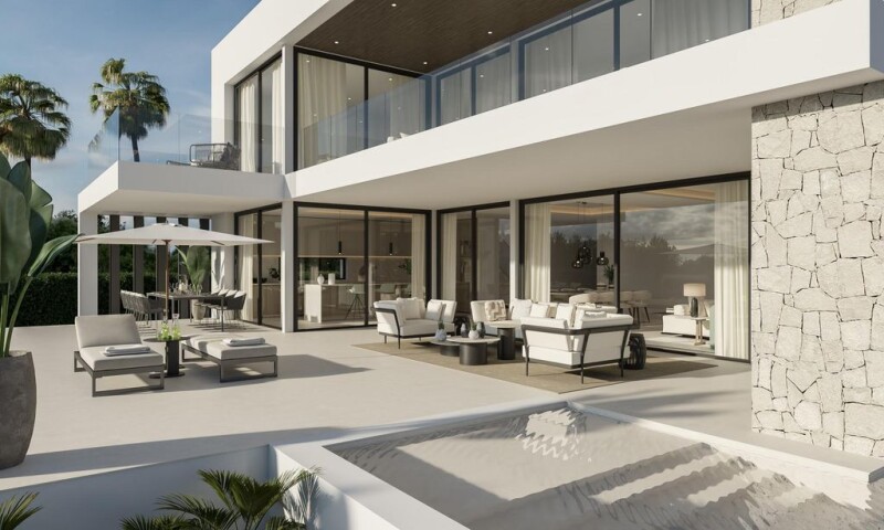 Contemporary Style Villa in Prestigious Marbesa Beachside Area for Sale This stunning villa, designed by renowned architect Carlos Lamas, exudes elegance and sophistication. Set on a 670 m² plot, surrounded by Mediterranean pine trees and other luxury properties of Marbella East, this villa is situated in the highly sought-after beachside location of Marbesa. The property boasts top-of-the-line finishes and eco-friendly features, making it one of the most beautiful contemporary homes in the area. Upon entering the 435 m² villa, you are greeted by an impressive entrance hall. The open-plan living and dining area, with large feature windows overlooking the terrace and pool area, is split by a double-sided fireplace. The German designer kitchen Nolte Kuchen, with a breakfast bar and direct access to the terrace and barbecue area, is perfect for entertaining friends and family. The first floor comprises a luxurious Master suite with a dressing area and designer bathroom, two additional bedrooms, and a family bathroom. The lower level offers a multipurpose room, a bedroom with an ensuite bathroom, a technical room, and a storage room for garden equipment. The villa's 287 m² terraces include covered and uncovered areas, a roof terrace/solarium with chill-out and sunbathing areas, and breathtaking sea views. Other luxurious features include a state-of-the-art home intelligence system, energy-efficient air conditioning, underfloor heating throughout, Miele appliances, and Italian-made invisible doors. The property also offers a closed garage and open parking space for two cars. This is contemporary living at its finest, offering a perfect balance of style, comfort, and sustainability.