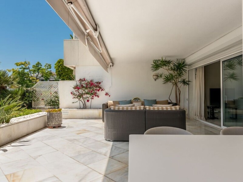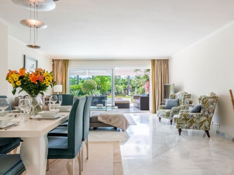Immaculate Ground Floor 3 Bed Apartment in Los Granados Golf, Nueva Andalucia. This recently refurbished unit is a golf lover´s dream, walking distance to one of the most prestigious golf courses in Southern Europe. South West facing, overlooking the 1st hole. All 3 bedrooms are en-suite and with an internal living area of over 175 sqm makes living practical and comfortable, the covered / open terrace with 75 sqm gives the new owners a beautiful well protected area to watch over their grandchildren with direct access to the main beach style pool giving safety through out the gardens. With 24hr security, private gym and sauna, indoor pool and golf practice facilities, this development sets the standards for luxury secure living.