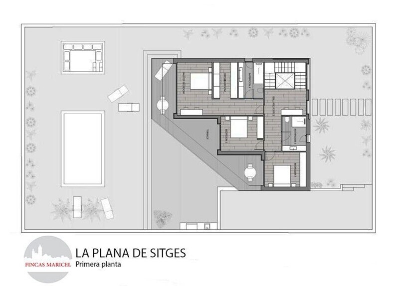 For sale exclusive villa in La Plana, Sitges, distributed over three floors with high quality finishes and contemporary design. Located on a plot facing four winds, this property offers light and spaciousness in each of its spaces: Main floor: Outside, a porch with natural stone details, wooden ceilings, private garden, pool and patio that create a perfect environment to enjoy the outdoors. Inside, the highlight is the day area with porcelain floors, a large living-dining room with large windows, an equipped American kitchen, a guest toilet and a service room with a bathroom. First floor (night area): With parquet floors, it includes an elegant master bedroom with private terrace, dressing room and en-suite bathroom. In addition, it has an office-type hall, two additional bedrooms, a full bathroom and a cozy living room. Basement: It houses a multipurpose room, laundry area, toilet, and a garage with a charging station for electric vehicles, as well as additional parking space. Extras: Aerothermal system, underfloor heating, centralized ducted air conditioning, and provision for the installation of an elevator. This villa combines design, comfort and advanced technology, ideal for living in an exclusive environment in Sitges.[IW].