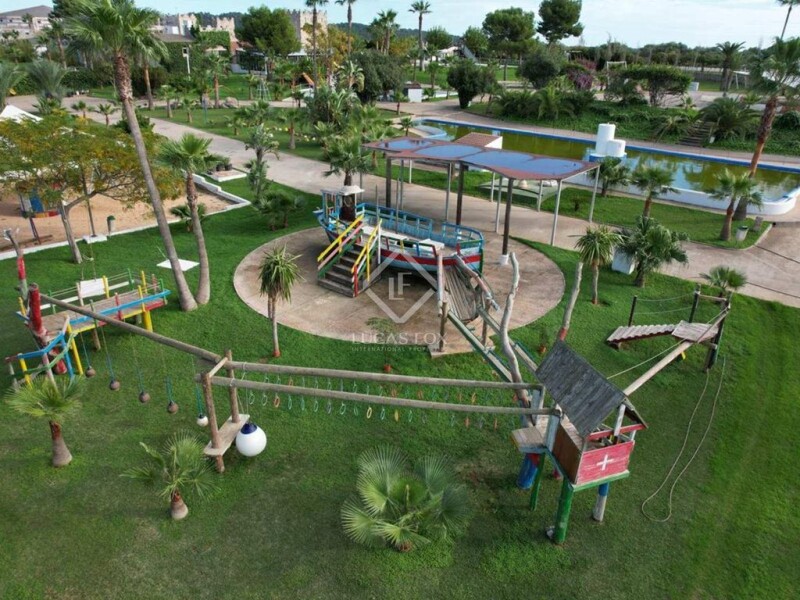 Excellent tourist and commercial leisure complex with 11,855 m² built in various buildings on a plot of 87,925 m² in the municipality of Ciutadella de Menorca, with easy access. First of all, the complex has a 426 m² building in the shape of a castle for commercial activity, with a souvenir shop, bar, garage and several warehouses on the ground floor. The first floor offers a property with five bedrooms, four bathrooms, kitchen, living-dining room and terrace. It also has a circular structure of more than 1,500 m² for parties and shows. The exteriors of the complex have spectacular green areas where various activities take place, such as a go-kart circuit surrounded by grass, a swimming pool, a pond with a sheet of water, mini golf, an area for children's attractions and a covered terrace for a bar/restaurant. It also has a large outdoor car park for 325 vehicles. The complex is self-sufficient as it has an impressive installation of solar panels and its own water wells, so it does not require a connection to public water or the electricity grid. Without a doubt, a unique tourist and leisure complex on the island with all the permits, for the development of its different recreational activities. In addition, due to its great potential for profitability, it could be an unbeatable investment opportunity. Contact us for more information, or to arrange a visit.