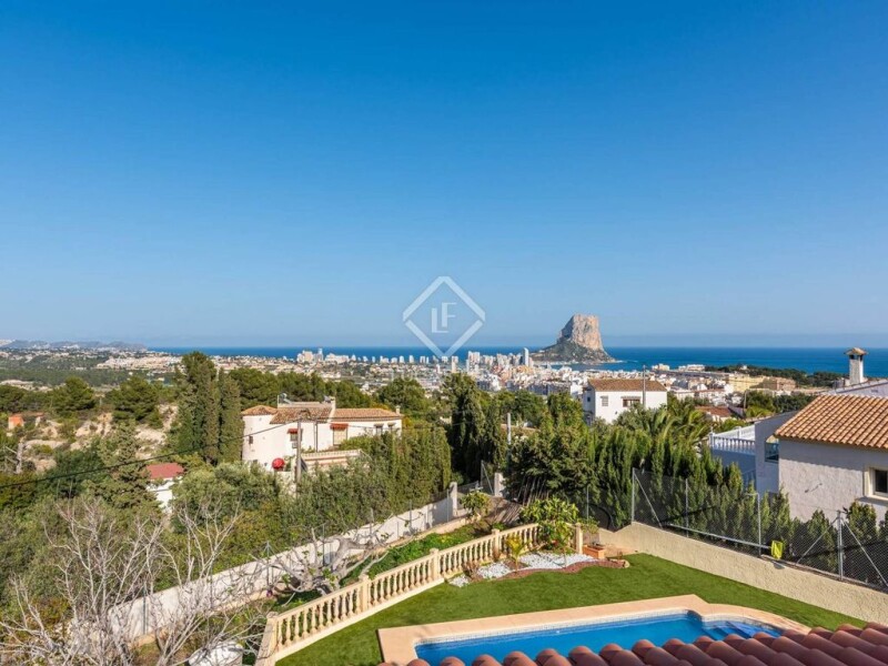 An exquisite villa situated in a serene area near Calpe, Spain, offering a perfect blend of privacy, comfort, and stunning natural surroundings. The villa is an ideal choice for those seeking a spacious, well-appointed retreat, whether for personal use or as a high-end rental property. The villa, built in 1996, is spread across three floors, with a total living area of 441 square metres, sitting on an expansive 1,100 square metre plot. With six well-furnished bedrooms and six bathrooms, the villa comfortably accommodates large families or groups, ensuring privacy and convenience for all guests. The modern design is complemented by multiple living areas, providing ample space for relaxation and socializing. One of the villa's standout features is its large terrace, which offers breathtaking views of the Mediterranean Sea and the surrounding mountains. The terrace is equipped with an 8x4 metre swimming pool, making it a perfect spot for outdoor entertainment or simply enjoying the peaceful environment. The pool area is designed for both relaxation and fun, whether you are lounging by the water or taking a refreshing dip. The interior of the house is just as impressive as its exterior. The villa includes a fully equipped kitchen that caters to all your culinary needs, complete with modern appliances and plenty of space for meal preparation. Air conditioning throughout the villa ensures a comfortable stay even during the hot Spanish summers. Located just 2 kilometres from the centre of Calpe and 2.7 kilometres from the beach, the property offers the perfect balance between seclusion and accessibility. Guests can easily explore the local town, with its charming shops, restaurants, and cultural sites, or enjoy a day at the nearby beach. For those considering the property as an investment, location, size, and amenities make it an attractive option for the luxury rental market. Its capacity to host large groups in a beautiful setting ensures a steady demand, promising a lucrative return on investment. It is more than just a villa, it is a luxurious haven that combines modern comforts with the beauty of the Spanish coast. Whether you are looking for a private retreat or a profitable investment, this property has much to offer. Please contact us for further information.