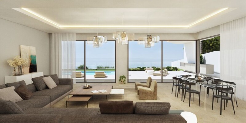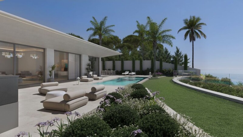 VILLA PURA VIDA We would like to introduce you to our unique newbuild project, PURA VIDA. This beautiful villa is located on a seafront plot, you will have the privilege of contemplating from great views of the Mediterranean Sea with beautiful sailing boats, to the island of Ibiza in the background. Located in one of the most exclusive urbanizations of Jávea, Balcon al Mar, a quiet and safe area, where you can find the most prestigious beaches on the Costa Blanca such as Portichol, Ambolo, and Granadella, just a few minutes from all restaurants and services. This contemporary project offers 5 large double bedrooms and 5 bathrooms, as well as a large garage for 2 cars. The house has 2 floors with a very practical distribution. On the lower level of this modern villa, we have the entrance where you will find 2 double bedrooms en suite, a storage room, and a spacious cinema or gym room. The first floor can be accessed by the internal staircase or by the external staircase through the garden. On this floor, we have the charming master bedroom suite with a dressing room and sea views, as well as 2 other large double bedrooms, a bathroom, and a guest toilet. On the same floor, Pura Vida will also feature a lovely fully equipped open-plan kitchen and terrace to enjoy the sunset, as well as a dining room that connects to the elegant outdoor terrace from where the views are even more spectacular open to the Mediterranean Sea, with a large swimming pool and a barbecue area where you will enjoy the luxurious Mediterranean lifestyle with your loved ones. This villa will be built with the best materials and top Miralbo quality finishes as well as the most innovative technology with everything necessary for comfort.