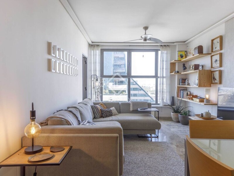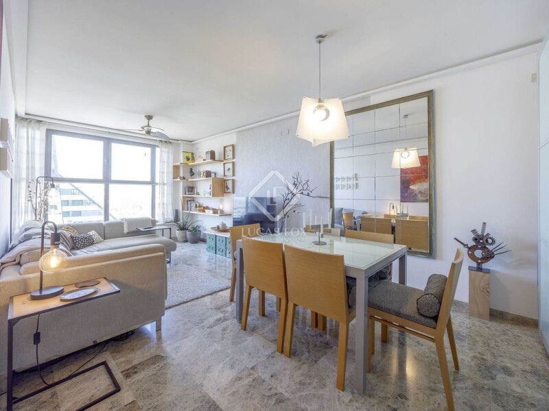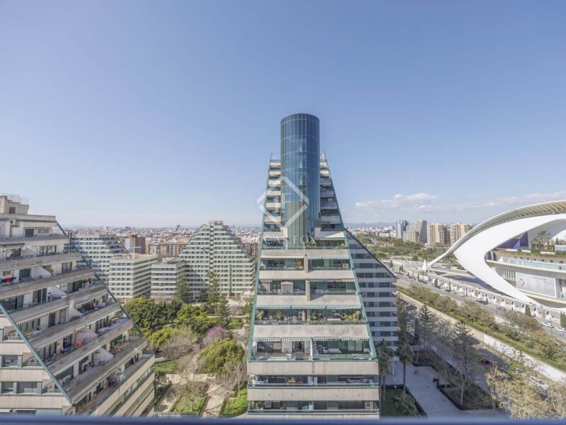 We present this practical property , with excellent views and an ideal location, opposite the City of Arts and Sciences and the Turia Gardens. The residential complex where the property is located has a gym, sauna, meeting room, garden and swimming pool, as well as a 24-hour concierge service. Layout of dining room living room , kitchen with gallery, full bathroom with bathtub and two bedrooms The owner also has a parking space for sale, although it is not included in the price of the property. Do not hesitate to contact us for more information or to arrange a personalized visit.