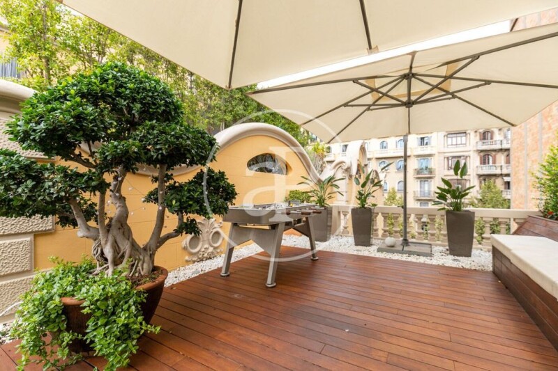 In the Sant Gervasi neighborhood, in a listed modernist building designed by architect Miquel Sans Grau, we find this unique penthouse spread over three floors filled with light and character. On the main floor, the open-plan kitchen seamlessly integrates with the living-dining room, a spacious and cozy area that leads to a terrace. Here, you'll also find a dream walk-in closet and a bathroom with luxury finishes. Ascending the stunning marble staircase, we reach the second floor, where there is a double bedroom and another full bathroom. In the tower of the building, there is a second bedroom filled with natural light and offering spectacular views of Barcelona. The terrace, spread across three levels, is a true urban oasis. It features chill-out areas, a barbecue, and space to enjoy the sun all year round. Additionally, it has an automatic irrigation system to keep it looking pristine. This home offers total privacy, as it is the only one on its floor, with natural light in every corner. The location is unbeatable, close to international schools, with easy access to the city's exits, and with a parking space in the same building. If you are looking for a home with history, charm, and all modern comforts, this property in Barcelona’s Zona Alta, in Sarrià-Sant Gervasi (Putxet), will captivate you.