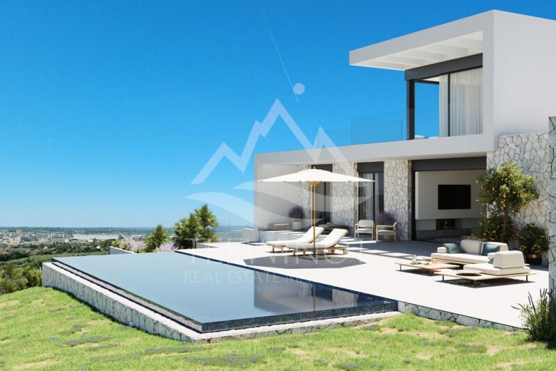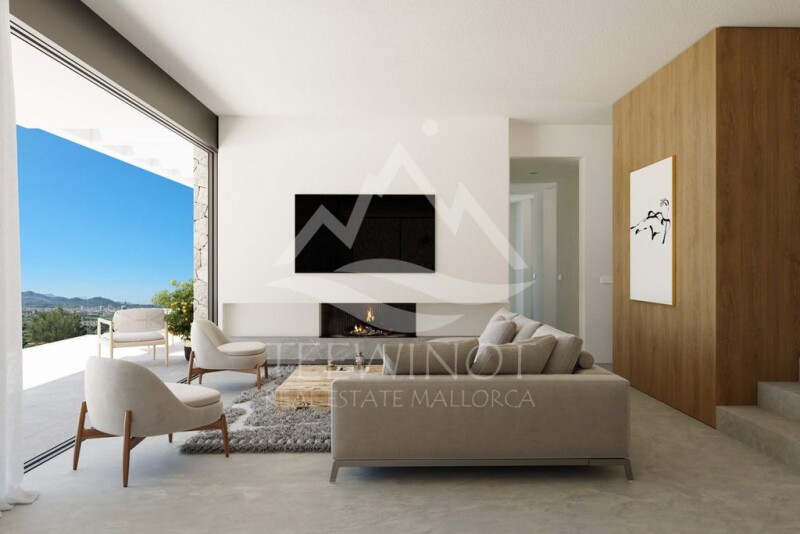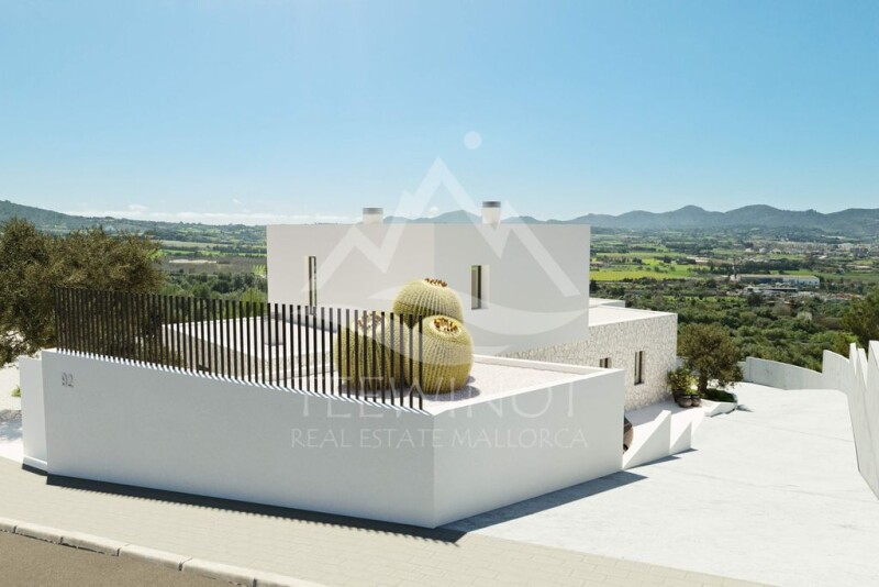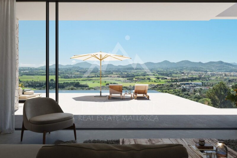 Sunshine Son Talent - luxury villa with a dream view near Manacor Experience the unique Mediterranean lifestyle in Sunshine, a luxurious, modern and very stylish property, which with its clear form and color language creates a wonderful contrast to the always blue sky of Mallorca. It is located just a few minutes outside of Manacor in the Son Talent urbanization and, due to its elevated position, offers you a breathtaking view over the town of Manacor, the surrounding hills and as far as the monastery mountains of San Salvador near Felanitx and Randa near Llucmajor. The generously sized living space of the house is spread over 3 levels, which are connected by an elevator. On the ground floor there is the light-flooded living room, from which you can enjoy an incredible view through the wide windows. An open, top-equipped kitchen with a cooking island and a large dining room is directly connected and, together with the living room, forms the heart of the house. There are also 2 bedrooms, also with a wonderful view, and 2 bathrooms. On the first floor is the 56 m² master suite, which offers you unique privacy. It has a dressing room and an open bathroom, whose free-standing bathtub offers a view that is just as spectacular as the comfortable king-size bed and the two terraces in front. All living rooms have air conditioning and underfloor heating, so that you can enjoy an extremely pleasant living environment both in summer and winter. In the basement, next to the garage and the utility and technical room, there is another room with a toilet, which can be used as a guest room, office or even a fitness room. There are a variety of storage spaces on all levels. This dream villa spoils you with pure luxury and the highest level of comfort in all seasons. In summer you can relax on spacious terraces around the 44 m² infinity pool, and in winter the family gathers around the cozy fireplace in the living room. A unique atmosphere paired with the best materials let you enjoy life in this unique property to the fullest. Additional details Ground floor: 152 m² 1st floor: 56 m² Basement and garage: 126 m² Pool: 44 m² Terraces (open and covered): 164 m².