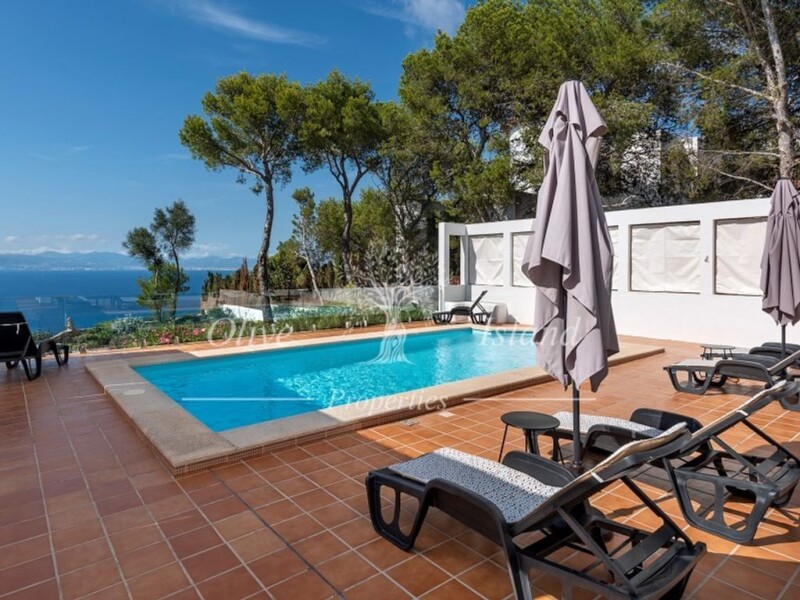 This amazing designer property was built in 1993 by a well known Spanish architect. It has 423m2 of constructed area. Located on a cliff-side plot of 1.400 m2. Filled with natural light, it is constructed over two floors. The property consists of an entrance hall, a living room, dining room, and a fully fitted kitchen with laundry area and utility room. From the moment you enter the property you have the immensity of the sea in front of you. There is a double bedroom, a garage and a spacious storage room on the ground floor. On the first floor there are three double bedrooms with ensuite bathrooms and the master bedroom with a dressing room, there is also an office. Outside there is a good sized terrace, swimming pool and garden. The property has an Holiday Rental Licence for 8 people. The location is very peaceful and has the most amazing sea views and sunsets. Additional information: Air conditioning throughout. Fitted wardrobes Store room Double glazing Private and quiet location with amazing open sea views towards the West. Natural light.