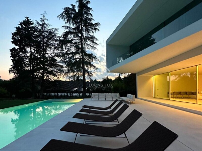 Lucas Fox La Moraleja presents this spectacular new build villa designed by Fran Silvestre. The property has a built area of 1,037 m² on a 2,877 m² plot , with wonderful views of the golf course. It offers five bedrooms and eight bathrooms, a garage for two cars, an indoor and exterior pool, a gym, a sauna, a wine cellar, and a multipurpose room. Villa Lavan is presented as a superposition of two volumes, with an angle between them that creates covered terraces and offers an orientation of the upper floor toward the landscape. The volumes have two concrete facades that perform the structural function, while the fronts are completely open with large windows facing the garden. In contrast to its exterior, the interior features connected, open spaces, with each room offering views of the garden. The plot has two entrances: one for vehicles that connects to the basement via a ramp, and another for pedestrians that connects to the main entrance via a series of paved platforms. The south-facing property is located on the upper part of the plot, leaving an open area for a large garden with a pool. The ground floor houses the property 's social areas . A spacious dining room living room opens onto the garden through a large window protected by the overhang created by the upper floor . At the rear, a compact block houses support areas such as the kitchen, service areas , and areas . The bedrooms are located on the upper floor , arranged around a reading area lit by a skylight. All bedrooms have direct access to a raised terrace overlooking the garden. In the basement, in addition to the parking spaces, there are other areas such as the gym, saunas, an indoor pool, a multipurpose room, and more; all of this is combined with technical and support areas such as a laundry area and utility rooms. The Trilogy project, designed by Fran Silvestre, features homes with a modern and elegant design, as well as contemporary architecture that connects with the beauty of the natural landscape. The property boasts incredible views of the golf course, as well as amenities such as a gym, sauna, indoor and exterior pool, cinema room, wine cellar, and other communal spaces designed with potential for a variety of uses. The villas integrate strategies and technologies that reduce the amount of water consumed, improve efficiency through the use of renewable energy, and guarantee internal quality. Contact us for more information about this or similar properties, as not all properties are listed on Idealista at the owners' request. Consult our website or visit us at our Property Lounge at 1 La Moraleja Square, where we will be delighted to welcome you.
