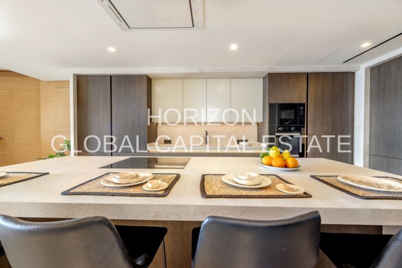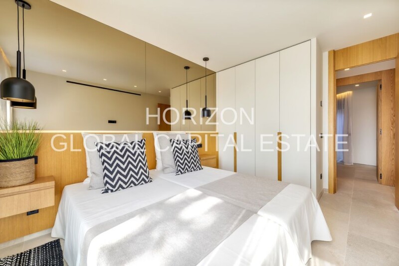 Luxurious penthouse in exclusive residential complex in Santa Ponsa This exquisite penthouse is located in the quiet yet sought-after area of Santa Ponsa on the picturesque island of Mallorca, Spain. The location offers a perfect balance between tranquillity and accessibility. Despite being only about 15.65 km from the lively center, here you can enjoy a relaxed atmosphere characterized by the natural beauty of the surroundings. For your daily needs, you will find numerous shopping facilities just 3.18 km away, which can be reached within a few minutes. The excellent connection to the infrastructure is perfectly complemented by the nearby highway, which is only 1.2 km away, and the bus stop, which is only 230 meters away. Families will be delighted by the short distances to educational facilities: A kindergarten is just 450 meters away and the nearest elementary school can be reached in just 630 meters. This exceptional location makes the penthouse not only an ideal retreat, but also a practical starting point for all areas of life. Immerse yourself in Mediterranean life and enjoy the incomparable comfort of Santa Ponsa. Welcome to your future home in Santa Ponsa - a breathtaking penthouse that leaves nothing to be desired! This luxurious first-time-occupancy apartment, which will be completed in 2025, offers spectacular sea views and a living area of approx. 154 m². There are 4 bedrooms and 3 bathrooms spread over a total of 5 rooms, with an additional guest WC rounding off the comfort. The high-quality furnishings impress with marble floors and underfloor heating, which provides pleasant warmth. The spacious living room, equipped with an attractive fireplace, offers access to the sunny southwest-facing terrace, where you can spend relaxing hours with a view of the sea. The exquisite kitchen is equipped with MIELE appliances and natural stone worktops. The communal amenities include a well-tended garden area with automatic irrigation, spacious sun terraces and a large infinity pool that invites you to relax. A modern elevator system provides convenient access to all floors of the three-storey building. The penthouse includes advanced technologies such as an air conditioning system with DAIKIN aerothermal system, an energy-efficient heat recovery system and a KNX home automation system that allows convenient control of air conditioning, heating, blinds and lighting. For added comfort, there is a sauna, a pre-installed Dolby surround audio system and a video intercom system. Walk-on flat roofs with Duero Gray marble flooring and a private underground garage complete the offer. Experience the highest living comfort and exclusive features in this first-class property - your new life on the picturesque coast of Santa Ponsa awaits you! Interior and communal areas: - Spacious communal areas with sun terraces - Well-kept gardens with automatic irrigation system - Large infinity pool (gunite concrete, gresite or porcelain stoneware) with interior lighting - Elevators (OTIS Gen360 model) with the latest digital technology Apartments: - High-quality marble floors in all living areas - Underfloor heating (cross-linked polyethylene pipes, EPS panels) - Wall coverings made of Duero Gray marble or similar porcelain stoneware - Smooth, washable plastic paint in interior rooms - High-quality interior doors made of paintable wood - Wardrobes with hinged doors, shelves and clothes rail - Aluminum windows (METRA brand) with thermal break and double glazing - Kitchen with MIELE appliances (induction hob, extractor hood, dishwasher, fridge, oven, microwave) - Worktops and tops in natural stone (Zarci Grey marble or similar porcelain stoneware) - Fossil stone wall painting in the kitchen Sanitary facilities: - Duravit WC (Starck III model or similar) - Duravit washbasins (Vero model or similar) - Grohe single-lever mixer taps and shower fittings Heating and air conditioning systems: - Air conditioning with aerothermal system (DAIKIN brand or similar) - Energy-efficient heat recovery through Simple Flow System - KNX ZENNIO home automation system (control of air conditioning, heating, blinds, lighting) Outdoor area and parking facilities: - Walk-on flat roof with double-layer insulation and Duero Gray marble flooring - Private outdoor terraces with marble tiles in Duero gray or similar porcelain - Covered underground garage with ramp and automatic entrance gate - Installed lighting, fire alarm system and fire extinguisher Additional features: - Sauna for communal use - Highest energy efficiency class ("green house") - Preparation for Dolby Surround Audio installation - Video intercom system (Fermax brand or similar).