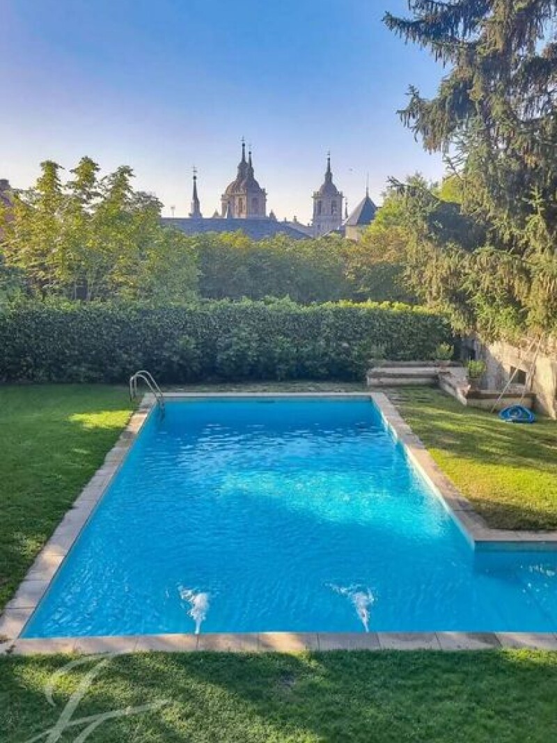 This spacious family villa is ideally located a few meters from the historic center of San Lorenzo de El Escorial, with an arbor garden and a gazebo with unbeatable views of the Monastery. With its spectacular plot of 1000 m2 and its 421m2 built, this villa from the 1930's renovated in 1973 with vintage style, offers a great potential. On the first floor, there is an entrance hall with large windows overlooking the garden and then the entrance with a cozy library, a large living room, dining room and kitchen with access also to the other side of the garden surrounding the house. Through an imposing wooden staircase, we find a guest toilet and go to the second floor where we find the master bedroom with views of the Monastery of El Escorial, and a large balcony overlooking the beautiful garden. It has a dressing room and full bathroom en suite. Next, we go to a double bedroom with two balconies and fitted closets, which shares a separate full bathroom with another guest room next door. Going up to the second floor, we find a large attic room with views to the Monastery, fitted closets, sharing a full bathroom with another double bedroom. In the semi-basement floor, we find a large room with windows to the garden and a full bathroom, a second kitchen with its cellar and pantry, and the service area consisting of 2 bedrooms and a full bathroom. In addition, this beautiful family home enjoys an extensive garden originally designed by the famous J. de Winthuysen for the residence of Mr. Perez Ortega in 1920, which surrounds the property, with a large swimming pool that adds a touch of luxury and comfort. In summer, you can enjoy the views of the Monastery at sunset from the raised terrace with its awning. A unique opportunity, with a privileged location just a few minutes walk from the historic center of El Escorial, with its restaurants and local stores, just an hour by train, bus or car from the center of Madrid.