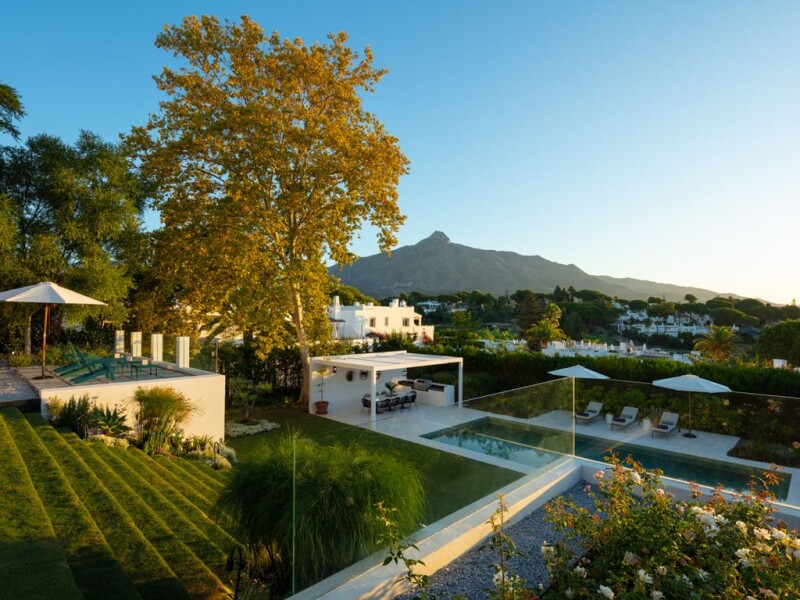 "Exquisite family residence located in the heart of the golf valley that combines a classic exterior with a modern superior quality. inside. Open views to the golf, sea and mountains. Built with the best quality and design, it is a unique masterpiece. The home has been completely renovated to the highest specifications and redesigned by a top interior decorator, The main accommodation is spread over two floors. It has five spacious rooms with bathroom, five bathrooms, a guest toilet, Open living room, with direct access to the outside terrace. The living room, with its fireplace, takes you to a large dining room, open kitchen and breakfast area. All rooms have direct access to outdoor terraces. The upstairs rooms have stunning views over the La Concha mountain and the sea. Offers an additional staff room en suite with kitchenette in the basement, all with independent access. Excellent garden, with a remarkable landscape that integrates a fabulous swimming pool and a covered outdoor dining room. Space with barbecue. Community expenses: Without community - IBI: € 3565 / year. ".