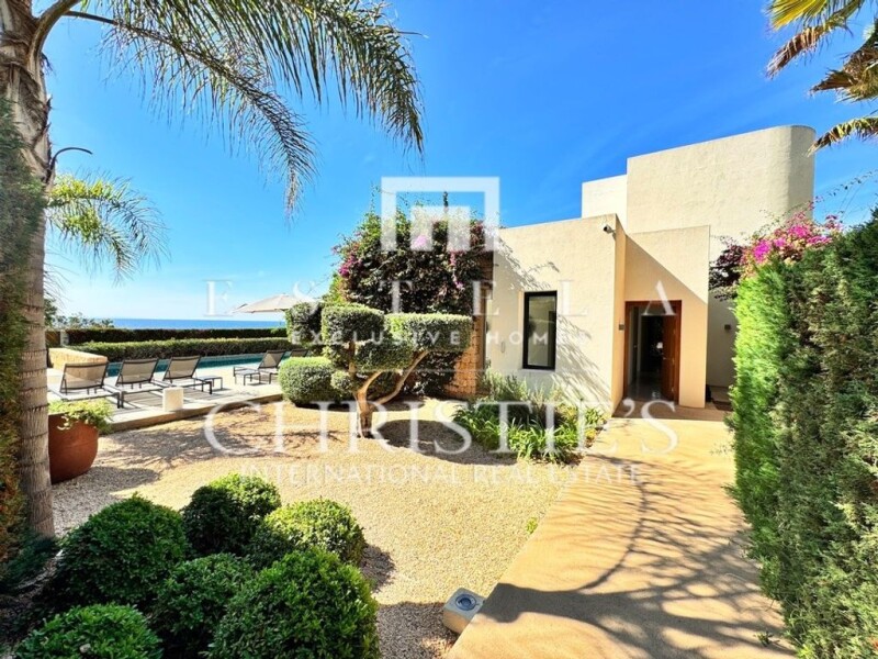 Villa Iria is located in the area of S'Argamassa, in the northeast of the island, famous for its quiet sandy beaches and beautiful coastline of red rock. Within walking distance is the marina of Santa Eulalia and its varied stores. This ideal location offers you a wide range of facilities to enjoy an unforgettable vacation: nautical activities, beach restaurants, typical markets, mini markets, and much more. When you walk through the door of your villa, you enter a true haven of peace. A charming private driveway leads you to the entrance of your villa, completely renovated and decorated with high quality materials. It is equipped with all the comforts you could wish for: air conditioning, luxury bedding, fully equipped kitchen, private bathrooms, wifi, cleaning service, security system and multiple 'a la carte' services. The garden, full of charm, invites you to relax by a beautiful pool with emerald green reflections, surrounded by palm trees and an ancient olive tree. On the top floor, a large solarium terrace offers a breathtaking view of the sea that will captivate you until sunset. In short, Villa Iria is a little corner of paradise, surrounded by an environment where activities are never lacking. Villa Irina is also located in S'Argamassa, in the northeast of the island, famous for its serene sandy beaches and majestic red shores, close to the marina of Santa Eulalia and its many stores. The perfect location offers you a wide range of services for an unforgettable vacation: nautical activities, beach restaurants, local markets, small stores, and much more. As you walk through the door of your villa, you are immersed in an oasis of peace. A charming path surrounded by orange trees and exotic plants leads you to the entrance of your villa, completely renovated and decorated with high-end materials. This villa also features every imaginable comfort: air conditioning, luxury bedding, fully equipped kitchen, private bathrooms, wifi, maid service, security system and a wide range of 'a la carte' services. The intimacy of the terrace invites you to relax by a magnificent emerald green reflecting pool, located at the foot of an ancient olive tree. On the top floor, a large solarium terrace offers unparalleled views of the sea, which will accompany you until sunset. In short, Villa Irina is a little piece of paradise, surrounded by a vibrant environment, full of activities at your fingertips. Let yourself be seduced by the magic of Ibiza! Villa Iria & Villa Irina are exceptional beachfront properties, located in the exclusive area of Santa Eulalia des Riu, on the east coast of Ibiza. They are two independent two-storey villas, each with its own private pool, offering a total of 9 bedrooms en suite, providing luxury and comfort in a privileged environment. With approximately 400 m² of living space and a plot of 1,400 m², this property is ideal for those looking to enjoy a modern residence with stunning sea views and direct access to the beach.