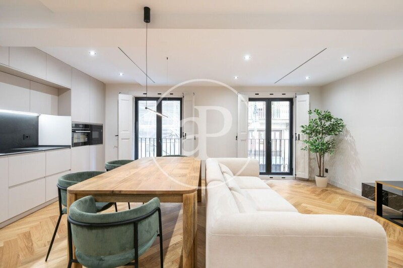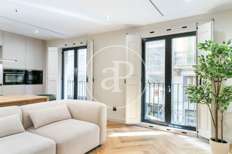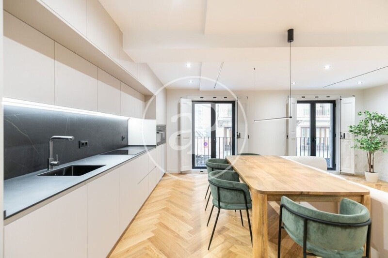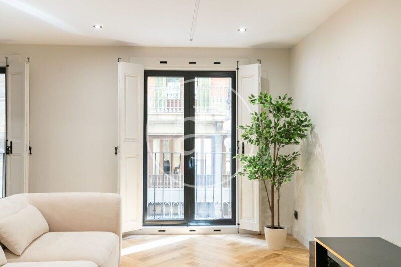 On calle Ferran, one of the most emblematic streets in the city, we find this wonderful brand new refurbished flat on the first floor of a very well-preserved historic building. The property has been refurbished using top quality materials and a lot of attention to detail, achieving a perfect balance between functionality and aesthetics. The finishes in neutral tones and its clean-lined design give the property elegance and a feeling of spaciousness. The property is distributed in a functional and well-organised way, starting with a hall at the entrance where we find a separate room in which to leave coats and shoes, ideal for keeping the entrance clean and to the right the living-dining room, very spacious and cosy with two large windows to the street and an integrated kitchen equipped with top of the range appliances. The day area is completed with a very spacious bathroom and a separate laundry room. To the left of the entrance is the sleeping area, which consists of three double bedrooms, the master bedroom with dressing room and en-suite bathroom. For greater comfort the property has ducted air-conditioning and heating, double-glazed windows and natural wood herringbone parquet flooring. A great opportunity to acquire a unique property with ample space in the heart of the Gothic Quarter. .