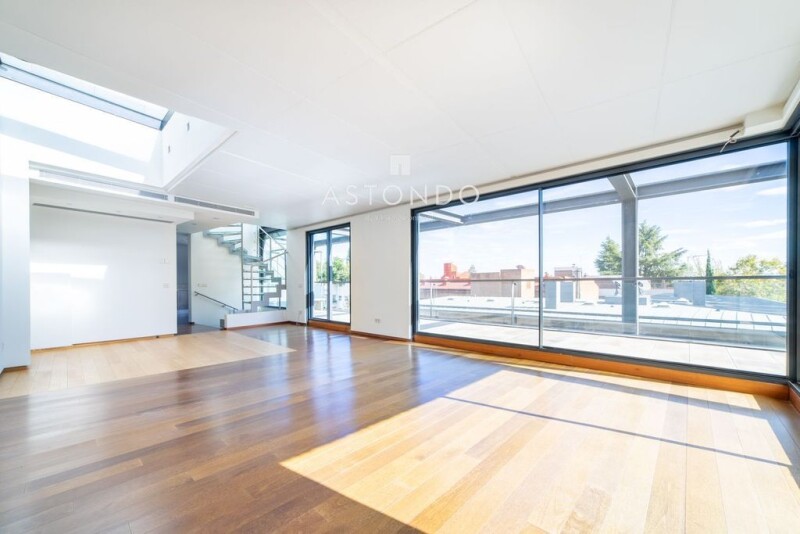 In the El Viso area, one of the most exclusive in Madrid, a unique home is for sale. It is a triplex of more than 240 useful square meters, with 4 bedrooms and 4 bathrooms. The house has 3 floors. On the ground floor we find 4 bedrooms, two of them with en-suite bathrooms, with large built-in wardrobes in all of them. The other two rooms share another bathroom. On the next floor there is a spacious living room with large windows to an impressive terrace that surrounds it, a courtesy toilet and the kitchen that is furnished, and has a dining area. The top floor is perfect for social gatherings, as it has a large terrace, kitchen, toilet and living area. All floors are connected by stairs and a private elevator. The house is completed with two parking spaces and a storage room. The farm It has a heated pool, jacuzzi and sauna.El Viso is located in the Chamartín district. It is one of the most exclusive areas of the city, it enjoys all the comforts of Chamartín, but it is located next to the Salamanca neighborhood, so you can enjoy the best leisure and shopping areas in the city, but living in a super quiet area, surrounded by large trees.