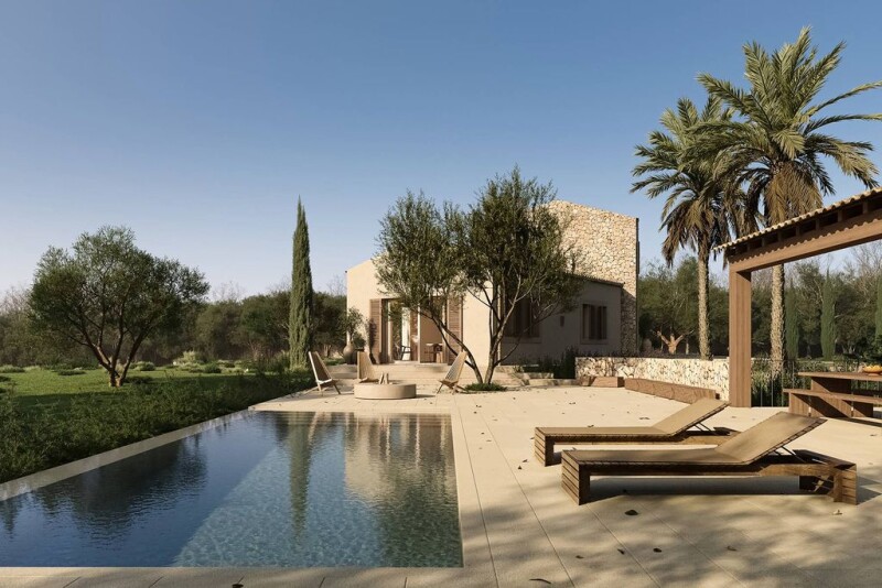 We are pleased to present this exclusive country house located in the heart of Mallorca, a true refuge of tranquility and natural beauty. This magnificent residence, ideally located on an impressive plot of 59,000 square meters, offers panoramic views that capture the essence of the Mallorcan landscape. The property, currently in the development phase, has been designed to blend modern comfort with traditional rustic elements, creating a cozy and timeless atmosphere. The interior design includes wooden beam ceilings that perfectly complement a modern designer kitchen equipped with a central island and a wine cellar, ideal for wine enthusiasts. The house consists of three spacious bedrooms, each with its own en-suite bathroom, ensuring the privacy and comfort of all residents. In addition, accessibility features ensure a comfortable home for individuals of all ages and mobilities. Luxury facilities include a private garden that promises to be a sanctuary for relaxation or outdoor entertainment, while the private swimming pool invites you to enjoy refreshing dips during the warm summer months. A spacious terrace offers the perfect setting for outdoor dining or simply enjoying the stunning countryside views. Additionally, the property features central oil heating and central air conditioning, ensuring a comfortable environment throughout the year. Ample storage space completes this home, providing practical solutions for everyday living. Located in a privileged location, this house not only enjoys the peace and tranquility of the countryside but is also conveniently close to all daily needs. Schools, hospitals, shops, and services are within a short drive, ensuring that everyday conveniences are always within reach. This property represents an exceptional opportunity for those seeking a luxurious and tranquil lifestyle in one of Mallorca's most sought-after environments. Whether the countryside is your ideal retreat or a place to call home, this country house is truly something not to be missed.