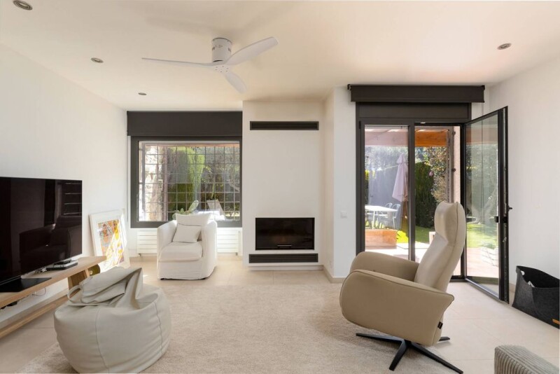 Beautiful house with exquisite and high quality renovation in the center of Alella, a renowned village on the north coast of Barcelona. It is located in a private residential complex with communal pool. The house consists of two floors, has a covered garage for one car and easy parking outside. Floor 0: entrance hall, living-dining room with fireplace and connected to the porch and private garden, kitchen-office design, bedroom and guest toilet. Floor 1: double sized master-suite (previously two rooms), two double bedrooms, one single bedroom used as a dressing room and a large family bathroom (which could be converted into two bathrooms). The property has been tastefully renovated with good materials and is ready to move into. Santos panelled kitchen, porcelain floors, new heating installation, new cassette fireplace, wooden beams and iron beams lined with wood, artificial turf... It overlooks the vineyards and mountains of Alella, renowned wine village, and is within walking distance of the town center with its stores and restaurants... Alella stands out for its proximity to the beach, El Masnou yacht club, Vallromanes golf course, international schools and 20 km from the center of Barcelona. The best option to live all year round and enjoy the mild climate of the Maresme!.