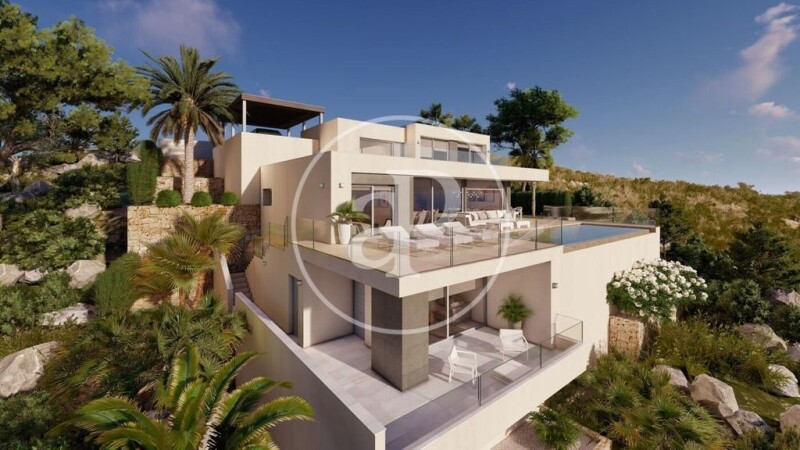 In the stunning surroundings of Residencial Jazmines, this villa, known as Villa Vigía, is located in an elevated location offering spectacular views of the Costa Blanca. From this property, you can enjoy panoramic views of the sea, with the Peñón de Ifach and the beauty of the surrounding landscape as a backdrop. The villa has three bedrooms, one of which has an en-suite bathroom and a large dressing room, all of them with stunning sea views. Outside, the spaces have been carefully designed to take advantage of the Mediterranean climate, with a large terrace, an infinity pool, barbecue area, well-kept gardens, porches and an outdoor dining room. With over 170 m² of space, this villa offers the perfect place to enjoy the Costa Blanca sun and the outdoor lifestyle. The distribution of the villa makes it perfect both as a main residence and to enjoy vacations or long stays. The main floor is ideal for a couple, with an en-suite bedroom, dining room, kitchen and a toilet. The second floor has two additional bedrooms, ideal for children or visitors. In addition, on the ground floor, there is a basement with a private terrace that can be adapted for various uses, such as a gym, office or cinema room. This villa is a perfect opportunity for those looking for a new home on the Costa Blanca. It is located in the exclusive Cumbre del Sol Residential Resort, a place that deserves to be discovered for its unique beauty. If you would like more information about this property, please do not hesitate to contact us. We are happy to help you with everything you need.