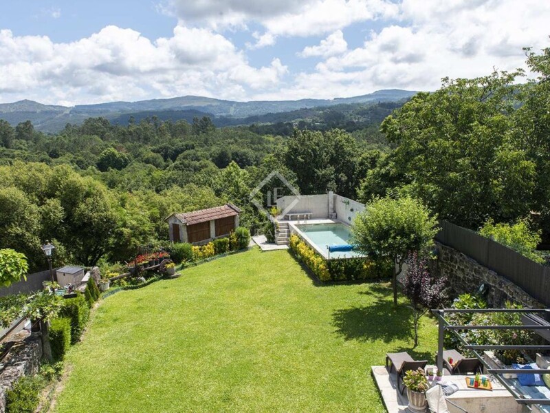 This is an elegantly built stone house located in O Cruceiro, a village in the area of Mondariz-Balneario. It is surrounded by nature and has almost three hundred square metres of living space and a plot measuring more than seven hundred square metres. The plot includes a lovely patio and other chill out areas, a swimming pool with a waterfall and an ample porch with views of the countryside. We enter the property through a wide gate leading into a parking space for two vehicles. There is an ample patio and next to it a very well kept and easy to maintain garden with its lawn, and a swimming pool. The property is elevated and has unobstructed views of the woods and surrounding landscape. The house is built on three levels of space. From the outside patio and up a few steps we enter the house and access a hall, to the right there is a bedroom with a walk-in closet and a bathroom, and to the left an ample living room giving into the patio and garden area. From the hall we go down a staircase and land in the kitchen and dining room area which can also be accessed from the patio. From the very same hall but going up we enter the main sleeping area with two bedrooms, two bathrooms and ample space for closets. On this level, we find an office that can be turned into an additional bedroom. All the rooms in this house benefit from abundant sunlight. The lower level in this house has an additional entrance to the kitchen, towards the right in an independent part of the building there is a room used for storage that also serves as a changing room and has a bathroom for guests. The front facade has a wide, decorated porch facing the garden and swimming pool area from which to enjoy the surrounding hilly landscape. It is a property well suited for a young couple with children as a primary or secondary residence. Also, it is an interesting purchase for clients looking for income as demand is very strong in the area, particularly during the summer. Please contact us for further information and to arrange a viewing.