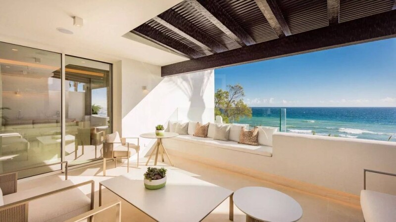 Gorgeous beachfront duplex penthouse located in the prestigious Puente Romano Resort, offering luxury living in one of the most sought-after areas on the Costa del Sol, situated just minutes from Puerto Banus and Marbella Old Town. The surrounding area boasts international schools, golf courses, shops, restaurants, hospitals, and other essential services. Beaches and outdoor activities are just a short drive away. The 211 sq.m penthouse has been meticulously renovated by Aalto Design Marbella, blending style with functionality, featuring high quality finishes. It comprises a modern kitchen, living room and 4 en suite bedrooms, including a master suite with private sea view terrace. The living room leads onto a large terrace with plenty of space for alfresco dining area, a chill out area and a private pool. The perfect place for relaxing and hosting. Other features include air conditioning, double glazing and 24 hour security. Puente Romano offers an exceptional lifestyle in an exclusive setting providing tennis courts, a spa, swimming pool and beautifully landscaped gardens.