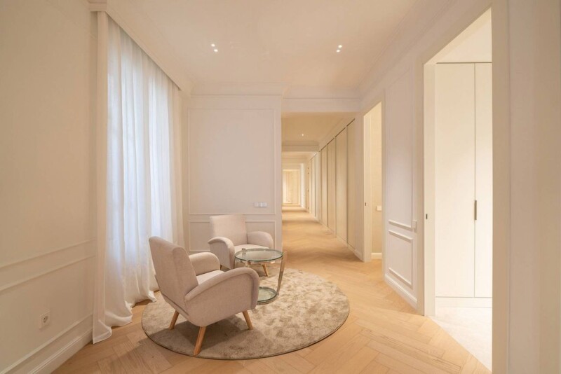 REA Inmobiliaria presents this exclusive flat refurbished to the highest standards. Located in the prestigious Hermosilla street, in the heart of the Barrio de Salamanca, this impressive 377sqm flat. Completely refurbished with the highest quality materials. This property combines the charm of an old building with the functionality and comfort of the latest innovations. It is located in a stately building with a representative entrance and concierge service, reflecting the elegance and elegance of classic Madrid buildings. Its high ceilings, spectacular balconies and large windows flood the spaces with natural light, enhancing the spaciousness and sophistication of each room. Distribution and outstanding features: Day area: A majestic entrance hall gives access to the large living-dining room, with unobstructed views and exceptional luminosity. The kitchen, fully equipped with high-end appliances, has a large office area, pantry and a storage or service area. Sleeping area: four spacious en-suite bedrooms, each with dressing rooms and custom-designed bathrooms, with lacquered finishes and luxury porcelain worktops. Extras and amenities: A large office or games room, ideal for teleworking or as a multi-purpose space, as well as a generous laundry and ironing area. Maximum comfort and state-of-the-art technology: Natural oak wood floors in herringbone, providing warmth and distinction. Aerothermal heating with underfloor heating and air conditioning, guaranteeing energy efficiency and perfect climate control at any time of the year. Advanced security system: armoured door and interior alarm. High-end carpentry and functional design that maximises light and space. Privileged location This flat is located in one of the most exclusive areas of Madrid, surrounded by luxury boutiques, haute cuisine restaurants and with access to all the necessary services. Its strategic location guarantees excellent connections and an incomparable quality of life in the heart of the Salamanca neighbourhood. The Recoletos neighbourhood is one of the most exclusive and desirable areas of Madrid, known for its refined atmosphere, tree-lined streets and proximity to luxury boutiques, restaurants and emblematic parks such as El Retiro. The Recoletos neighbourhood is one of the most exclusive and desirable areas of Madrid, known for its refined atmosphere, tree-lined streets and proximity to luxury boutiques, restaurants and emblematic parks such as El Retiro. A unique opportunity for those looking for a luxury home with the perfect balance between history, modernity and exclusivity.