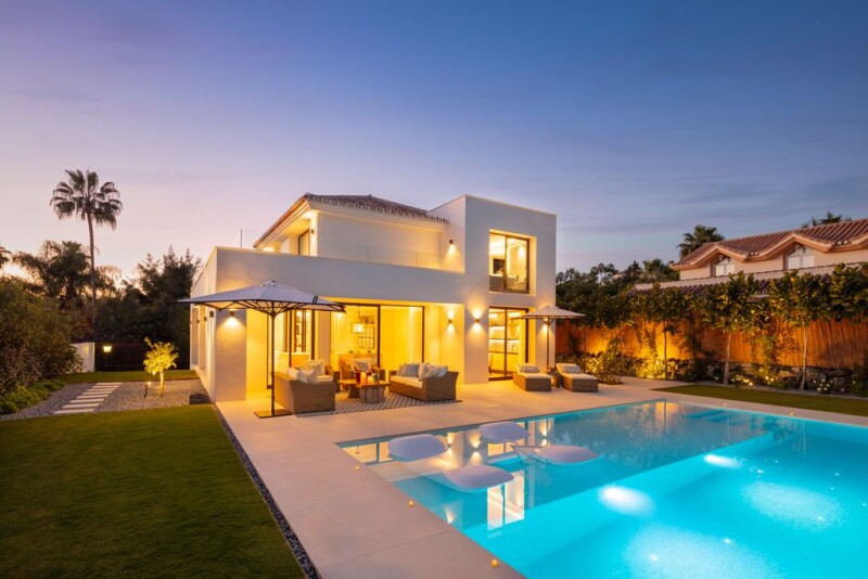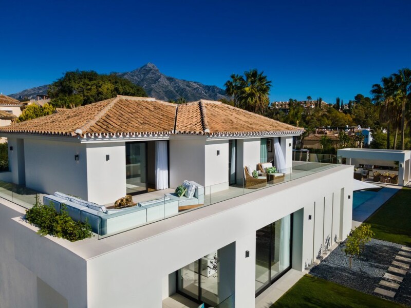 Villa London an opulent villa situated in the heart of the Golf Valley. A one-of-a-kind property completely renovated and with bespoke interior design and furnishings. has exquisite attention to detail and plenty of perks to entertain including a beautifully designed garden, swimming pool and BBQ area, and in the basement of the property, luxuries such as an entertainment room and home spa, delivering a sumptuous lifestyle. villa London sits within a plot of over 1000 m2, on one of residential Nueva Andalucia’s most desirable streets with views of La Concha mountain. Moments from a number of golf courses and within minutes’ drive from amenities such as shops and leisure facilities, Puerto Banus is also less than 10 minutes by car.