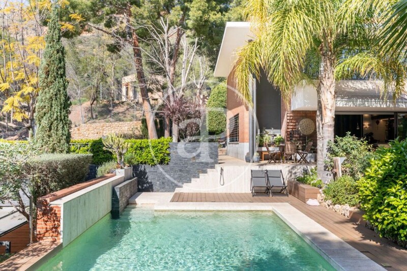 AProperties presents a magnificent detached house of 266 square metres built on a plot of 999 square metres, offering four bedrooms, three bathrooms (two of them en suite) and an unrivalled charm, combining modern comfort with a touch of timeless elegance. The house is surrounded by nature, inviting relaxation and enjoyment. Its intelligent design maximises space, with underfloor marble floors, solar panels and a fully equipped kitchen with top of the range appliances. The presence of the fireplaces adds a touch of warmth to the panoramic views of greenery and mountains, a natural spectacle that becomes the centrepiece of the home. Luxury is evident in every detail: a private swimming pool, a garden that has been cared for down to the last detail, a space to enjoy the tranquillity and a charming patio to take advantage of the fresh air. In addition, the property has a comprehensive security system that includes an alarm, security gates and 24-hour surveillance, providing absolute peace of mind. The privileged location in Los Monasterios, together with the serenity of a natural environment, completes the offer of this exceptional property. This residence in Los Monasterios represents a unique opportunity to acquire a luxury property in a privileged setting. Its impeccable design, breathtaking views and exclusive features make it a true dream home.