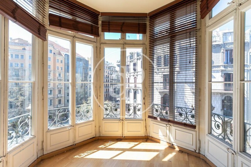 With an unbeatable location, in a spectacular Modernist building featuring a stunning entrance with coffered ceilings, a concierge service, and an original restored wooden elevator. The apartment, located on the fourth-floor corner of the building, with a bay window and gallery, has approximately 162 sqm of built area and requires a full renovation, offering multiple possibilities. It currently has 5 bedrooms, one bathroom, an independent kitchen, and a living room facing the chamfered corner. Original fireplace, coffered ceilings, the possibility of restoring hydraulic tile flooring, 2 balconies overlooking the street, original woodwork, and many other charming details make this a truly unique property in the area.