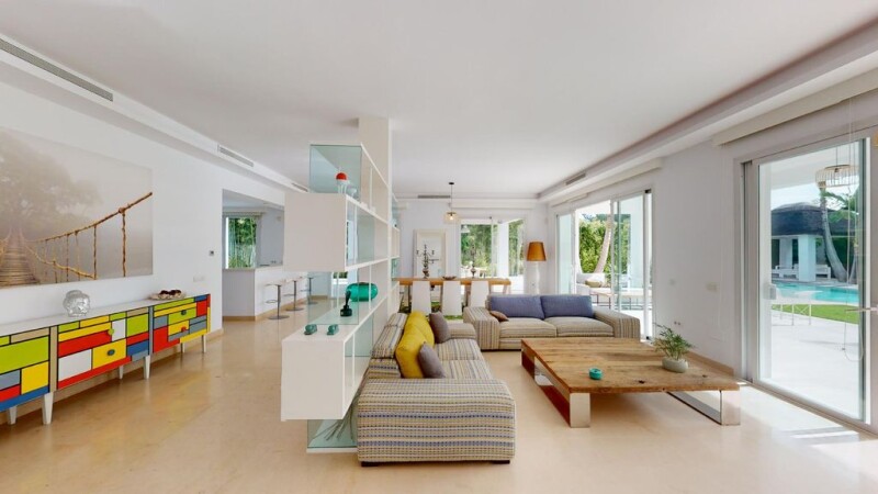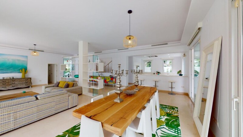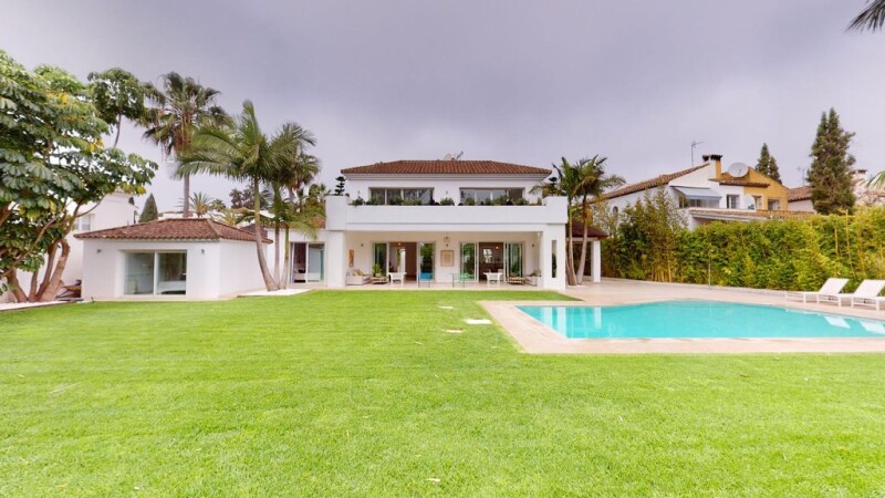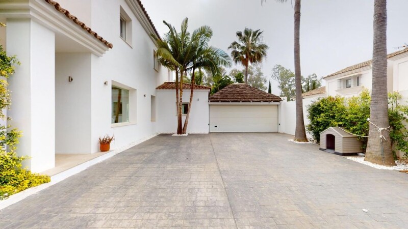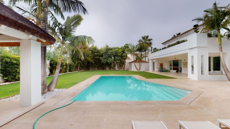 Stunning 4 Bedroom Villa with Pool in Estepona The location The villa is located in Estepona. Real Club de Golf Guadalmina is at 1.5km away and Atalaya Golf & Country Club is at 1.8 km away. Playa de Guadalmina and Playa Atalaya are at 1.4 km away. Malaga Airport is 45 minutes away and Gibraltar Airport is 40 minutes away. All distances refer to driving. The property The villa is built on 2 floors and has 4 bedrooms and 3 bathrooms. It has a very beautiful big garden with a large swimming pool. Plenty of relaxation areas and a barbeque area. A garage where you can park 2 cars. Main Floor The entrance hallway opens up to the huge living and dining room area. It's all open space and it connects directly to the garden. The kitchen is also in this space and it is fully furnished and equipped. One bedroom with a private bathroom and access to the garden. Top Floor The master bedroom occupies half of the floor. It has a huge bathroom and dressing area with a nice terrace. 2 bedrooms that share a bathroom.