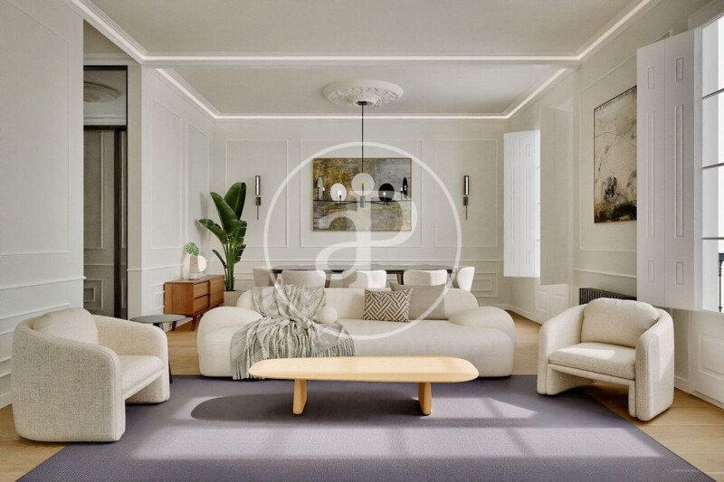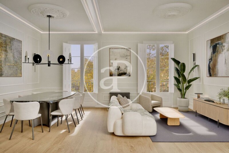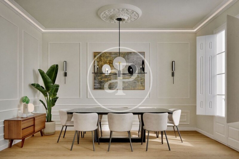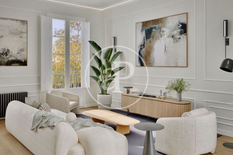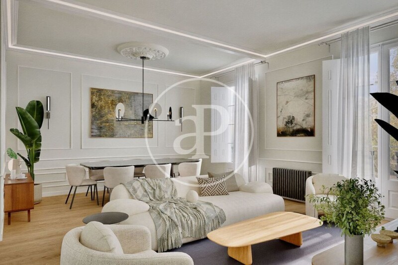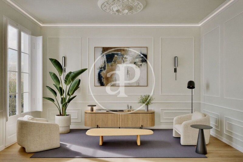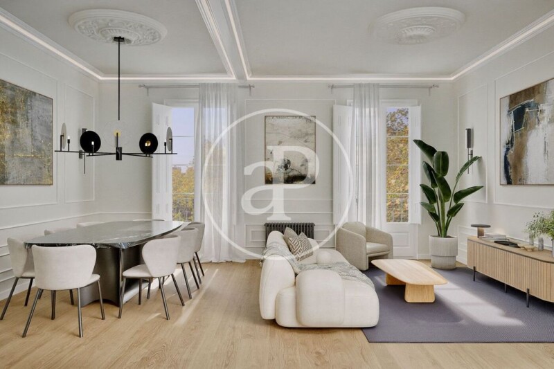 Enjoy the historic charm with modern comfort thanks to a comprehensive renovation, ready to move in, preserving original features such as restored woodwork, moldings, and rosettes. A charming home with natural light in an unbeatable location. Main features: Area: 95 m² built Bedrooms: 2 (one of them en suite) Bathrooms: 2 complete with high-quality finishes Kitchen: Semi-open with a modern design, fully equipped and functional Living room: Spacious and bright, with sliding glass and wood doors that enhance the sense of space Balconies: In all exterior rooms, offering spectacular views of Passeig de Sant Joan Classic building: High ceilings, moldings, and rosettes that preserve the modernist essence Other details: High-quality renovations, ready to move in immediately Optimal layout that makes the most of space and light Excellent orientation ensuring natural light throughout the day Excellent public transport connections, close to shops, services, and green areas Don't miss out on this gem in the heart of Barcelona! Contact us for more information or to schedule a visit.