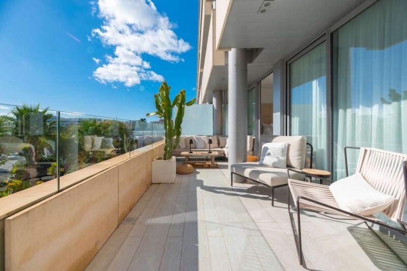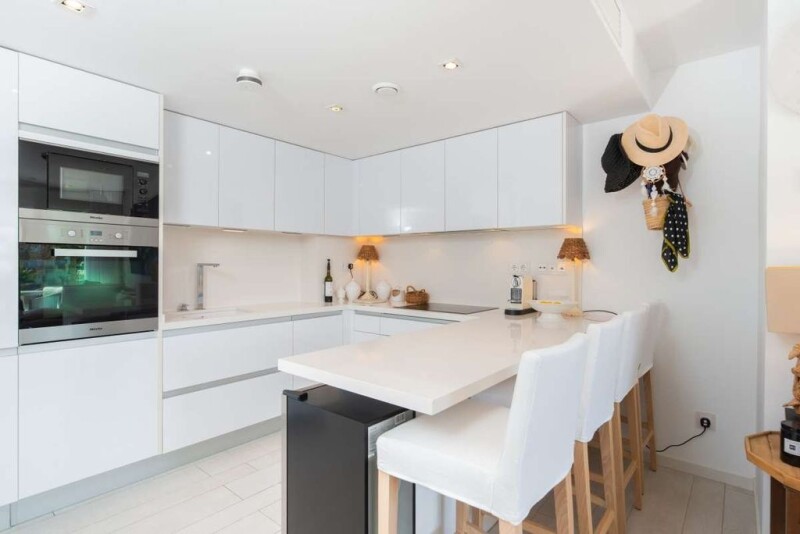 Perfect Location in Ibiza Town: Peaceful Living Close to Everything This modern and comfortable 82 m² apartment, located in the exclusive White Angel complex, is the perfect choice for those seeking luxury and convenience in Ibiza. Situated in a stylish and tranquil neighborhood, you are still just minutes away from the island’s most vibrant hotspots. White Angel is within walking distance of Marina Botafoch, Ibiza’s most prestigious marina, where you’ll find a wide selection of high-end restaurants, trendy bars, and exclusive boutiques. Popular hotspots such as Lío, Pacha, Cappuccino, and Nobu are all just steps away. The historic district of Dalt Vila, a UNESCO World Heritage Site, is only a short drive away, offering stunning views, charming streets, and a rich cultural history. Additionally, some of Ibiza’s most beautiful beaches, including Talamanca Beach, are just a short walk or drive away. The combination of tranquility and accessibility makes White Angel one of the most sought-after residential complexes on the island. A Fully Equipped Apartment with Everything You Need The apartment comes fully furnished and move-in ready, with an open and bright layout that creates a relaxed and comfortable atmosphere. The spacious living area seamlessly extends to the balcony, which is accessible from both the living room and the two bedrooms. With its southeast orientation, the balcony allows you to enjoy the morning and early afternoon sun without overheating in the late afternoon, making it perfect for Ibiza’s summer climate. The master bedroom features an ensuite bathroom, providing extra privacy and comfort. The second bedroom is ideal as a guest room or home office and is located next to the second bathroom. Additionally, the apartment includes a 12 m² storage room, perfect for storing luggage, sports equipment, or personal belongings. With a practical layout and elegant finishes, this apartment offers a stylish living space where you will instantly feel at home. Pool, Jacuzzy and a Gym – Everything You Need White Angel is more than just a residential complex; it provides all the luxurious amenities you could wish for. The large communal swimming pool is perfect for cooling off on warm days, while the two jacuzzis offer the ultimate relaxation after a long day. For those who love to stay active, the fully equipped gym has everything you need to maintain your fitness routine. Another major benefit of living in White Angel is the concierge service, available all year round for added convenience and security. With only 67 apartments, the complex offers an exclusive and intimate atmosphere, ensuring peace and privacy. This apartment is a unique opportunity for those seeking luxury, comfort, and a prime location in Ibiza. With its high-quality finishes, modern design, and top-tier amenities, it is an ideal choice for both permanent residence and investment. As one of the most desirable residential complexes on the island, White Angel offers an unmatched combination of tranquility, style, and accessibility.