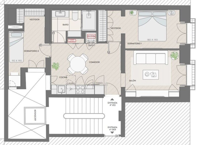 We offer for sale this exclusive flat of 8 cadastral square metres, completely refurbished and brand new. Located in one of the most representative and emblematic streets of the Universidad neighbourhood, known as the Soho of Madrid. Located on the fourth and last floor of the building. The property is representative and has a lift. This property has a fantastic location in one of the most exclusive areas of Madrid. The Universidad neighbourhood offers magnificent buildings, churches and palaces from the 18th century, as well as being next to important embassies, political headquarters, universities and schools. The area is perfectly communicated by public transport with the whole city. All this makes this property an excellent opportunity to live or invest. The property has a very practical layout, where we find an entrance with a nice hallway, which leads to the living area, consisting of living room with two balconies overlooking the street. With open plan kitchen, it comes furnished and equipped with high end appliances and custom made furniture. The sleeping area is made up of two bedrooms, with a complete bathroom that serves them. The entire property has ducted air conditioning and central heating. This property is located in a classic estate, being in perfect state of conservation and with favourable ITE. We have several similar properties in this area that can only be advertised on our website at the express wish of their owners. If you wish to see them you can do so by clicking on the additional link at the end of the advert.