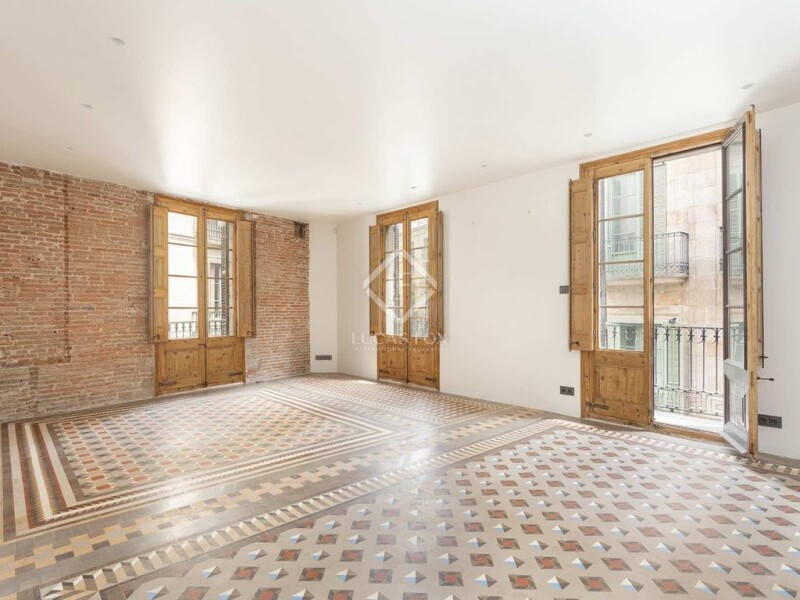 This fully renovated apartment with typical local architectural details is located in the center of the Gothic Quarter of Ciutat Vella. The apartment has a total area of 129 square meters and has been renovated to high standards. The apartment features a nearly square layout, with a spacious living-dining room and a spectacular open kitchen occupying half of the space. The other half of the apartment includes two double bedrooms, two bathrooms, a dressing room, and an entrance hall. One of the standout features of this property is the abundant natural light that enters through six French windows. Four of these windows are located in the living-dining room and kitchen, while the other two are in each bedroom. The apartment is situated on the first floor, equivalent to the second floor in reality, and offers spectacular views of the surrounding original and emblematic buildings. During the renovation, the original nolla floor was restored, highlighting the polychrome pavement's original colors. The kitchen boasts solid wood furniture from the Vertex Mobalco brand and stainless steel cladding with a mirrored effect. The countertops are made of granite, and the high-end appliances are from the Miele brand. Additionally, in the dressing room area, there is a hidden boiler along with a Samsung washing machine and dryer. One of the standout aspects is the entrance door to the second bedroom, which features a Gaudí-style trencadís stained glass window. This stained glass was created by the prestigious restoration firm Vitralls Bonet. The apartment's location on a privileged street in the heart of the Gothic Quarter is exceptional. It is equidistant from Las Ramblas, Cathedral Square, Plaza del Pí, and the starting point of one of the city's most important commercial axes, Portal de l'Angel.
