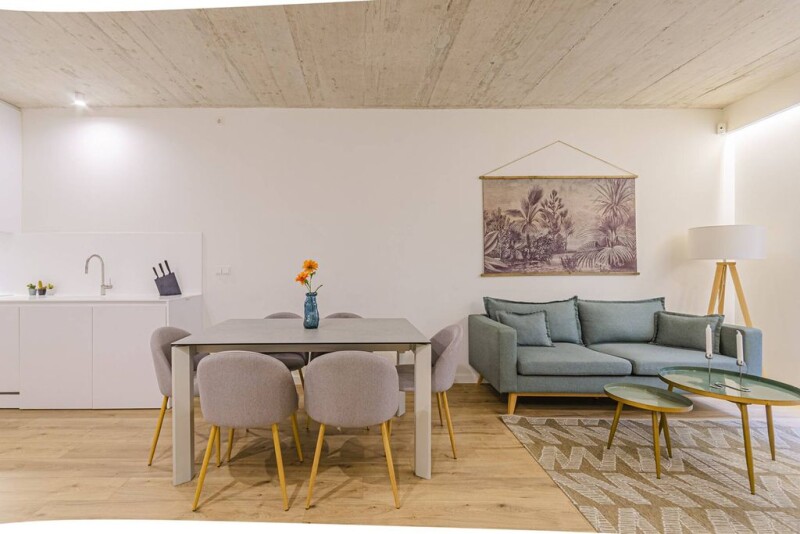 Fantastic new construction property in Raval - Sant Antoni. Built in 2020, this exclusive development offers a modern and bright home in one of the most dynamic areas of Barcelona, with a privileged location. The property has a private terrace, perfect for enjoying the Mediterranean climate all year round, and is located in a building with only 10 apartments, which guarantees tranquility and privacy. The design of the apartment is characterized by its diaphanous and functional distribution, with a large day area where the living room, dining room and open kitchen are integrated, optimizing the space and the entry of natural light thanks to its large floor-to-ceiling windows. The night area offers a double bedroom and a single bedroom, as well as a modern bathroom equipped with high quality finishes. This home has been designed to ensure comfort and energy efficiency. Among its features are the aerothermal system, providing underfloor heating and hot water in a sustainable way. It has ducted air conditioning, ensuring optimal air conditioning throughout the house. In addition, the home automation system allows to manage the lighting and temperature in an intelligent way. The exterior carpentry is aluminum with thermal break and double glazing with air chamber, offering excellent thermal and acoustic insulation. Laminate parquet floors are present in the main rooms, while in the bathroom porcelain floors have been chosen. The kitchen is fully equipped with high-end appliances and Kryon countertops, combining design and functionality. The building has a convenient elevator that connects all floors, plus a magnificent communal roof terrace with solarium, ideal for relaxing and enjoying the views of the city. The property will be sold with furniture included. If you are looking for a modern home, well located and with excellent finishes in Barcelona, do not hesitate to contact us for more information.
