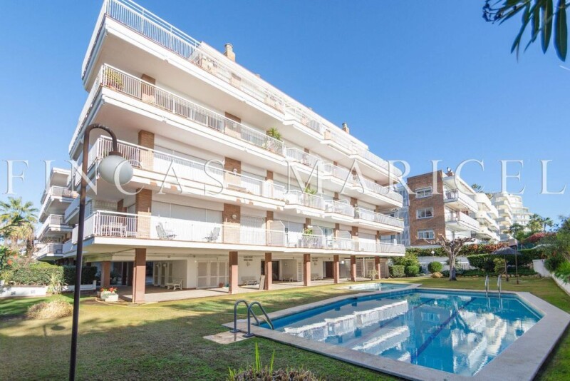 Discover your new home on the exclusive seafront in Sitges! This spectacular apartment offers everything you could want to enjoy life next to the Mediterranean. Upon entering, you will be greeted by elegant ceramic floors that add a touch of sophistication and freshness to every corner. The modern American kitchen is perfectly equipped, providing an ideal space to prepare your favorite dishes while integrating with the rest of the home. The living room is spacious and bright, with direct access to a magnificent terrace. Here, you can relax and enjoy the wonderful views of the sea, creating a perfect environment for your moments of rest or to entertain your guests. The apartment has two comfortable rooms, offering enough space for the whole family or to have a home office. The bathroom, with a modern design, is equipped with the best finishes and details, providing you with an oasis of comfort and style. The property has a concierge 365 days a year, ensuring your peace of mind and security at all times. The building also has a spectacular garden area and a community pool, ideal for cooling off and enjoying the sun in a quiet and safe environment. The Price includes one parking spaces, offering you comfort and security for your vehicles. Don't miss this unique opportunity to live in a privileged environment, with the sea as your closest neighbor. Contact us for more information and come visit this spectacular apartment in Sitges![IW].