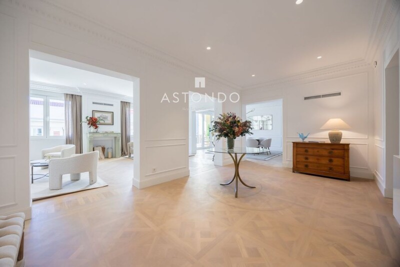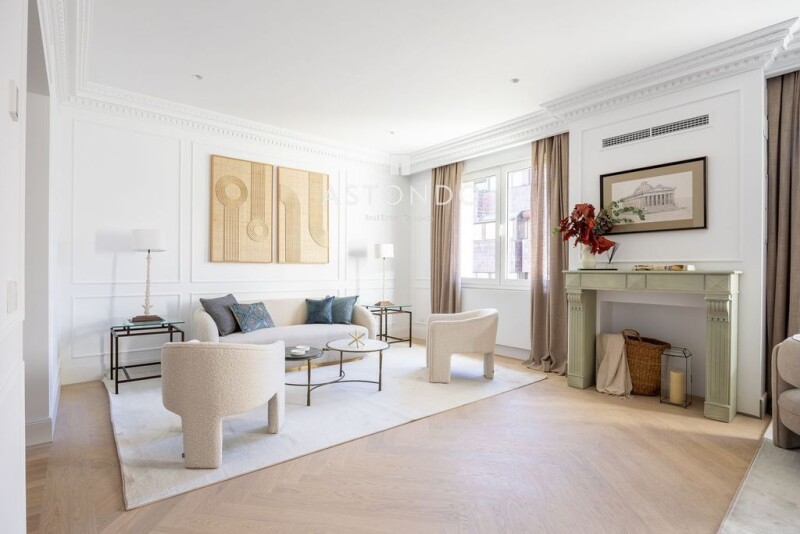 Do you want to live in one of the most emblematic houses in the Salamanca district, with more than 300 square meters? This is your chance. A house of more than 320 m2 built, completely renovated, with high quality finishes and a very exquisite decoration that will make your life in this house a unique experience. The house is in a building from 1947, with a very representative entrance. As soon as you enter the house, you find an incredible, large hall, from which you access the living room of the house, which has large windows to the outside. From the living room we access a dining room with capacity for 8 people to eat very comfortably, and from here we access a beautiful terrace where you can enjoy a coffee on one of the best streets in Madrid. From the dining room we also access the kitchen, it is very spacious, has a peninsula for daily meals, and is equipped with all high-end appliances. The kitchen has an adjacent laundry room. The social area has a guest toilet. The private area of the house is made up of a living room, an office and three bedrooms, all of them with en-suite bathrooms and built-in wardrobes in all of them. The master bedroom is worthy of being the master suite of a luxury hotel, since in addition to being large, it has an impressive dressing room and its en-suite bathroom. The entire house is equipped with air conditioning, with independent regulators for each room, and controlled by home automation. It has a doorman, staircase, elevator and service door as well as a storage room in the basement.
