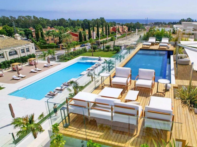 A beautiful development of luxury ground floor or penthouse apartments for sale in Golden Mile, Marbella. Built in different phases, these properties offer unparalleled luxury. Properties come with own garden or roof terrace and private pools with views. Located at the heart of Marbella's coveted Golden Mile area, close to Puerto Banus, we find these modern, luxury homes in a beautiful development spread through 5 buildings: The ample plot of 8,000 m² includes a 6,000 m² communal area with landscaped gardens, a pool and sun deck. Homeowners in this development can also enjoy a fully equipped wellness spa, a gym, heated indoor pool, a clubhouse and a beautiful area for celebrations. In line with other leading developments around the world, this project shall provide a complete concierge service along with a wide range of exclusive services offered by professionals, such as personal trainers, personal shoppers, beauty stylists, child care, cleaning, healthcare, legal advice and lessons in anything the resident wishes. Each of the 5 blocks contains 4 separate apartments with 4 bedrooms and a wonderful open concept living and dining area with open-plan kitchen of the highest quality. Interiors have been designed with a focus on light and space thanks to large windows and high ceilings. The clever use of partitions allows the owner to enjoy a flexible layout. Cutting-edge technology and carefully selected materials have been employed to create these eco-friendly homes. Each apartment has 2 floors. The ground floor apartments boast private gardens with basements comprising a large entertainment room, fitness area and access to the garage. The penthouse properties offer large rooftop sun terraces, ideal for sunbathing in privacy or enjoying barbecues with the stunning views of Marbella's port and coastline in the background. Contemporary high-end homes in an enviable location in Marbella.