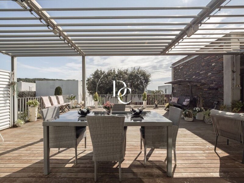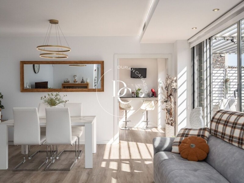 We present to you this magnificent duplex completely renovated, located in a quiet residential area with concierge service and 24-hour security, just five minutes from Sitges and Vilanova. The property stands out for its incredible 50 m² terrace facing southeast, offering clear and partial sea views, ideal for enjoying the sun and relaxing moments outdoors. On the main floor, there is a spacious and bright living-dining room with direct access to the terrace, a fully equipped kitchen, and a guest toilet. The lower floor houses the resting area with three bedrooms: one suite, one double room, and one single room, along with another full bathroom. On this same floor, there is another 20 m² terrace, perfect for creating a second cozy outdoor space. The property has been recently renovated and features excellent finishes: parquet flooring, centralized heating, aluminum carpentry with double glazing and thermal bridge break, built-in wardrobes, storage room, and two parking spaces. The community offers a privileged environment with large garden areas and an impressive infinity pool that invites relaxation and enjoyment. A very bright property, with all rooms facing the outside, designed for those seeking comfort, design, and quality of life in an unbeatable location. Don’t miss the opportunity to visit it!.