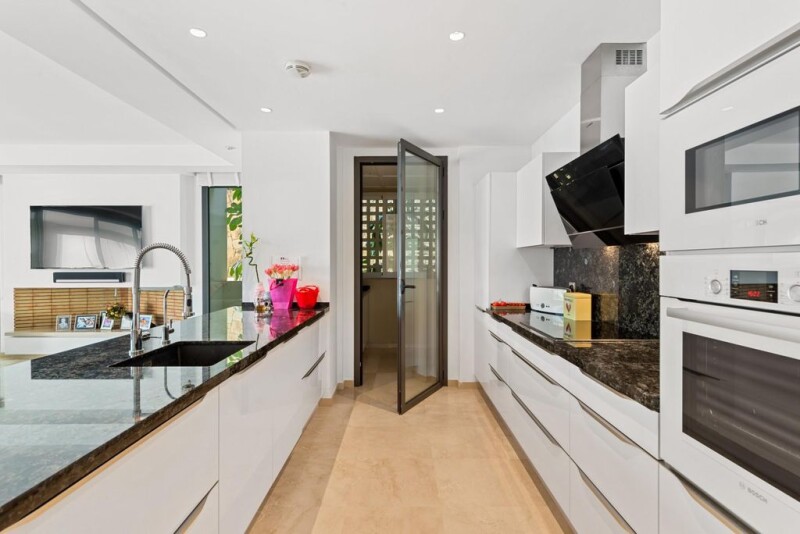 Luxury ground floor apartment in Golden Mile, Marbella A stunning ground floor apartment for sale in Imara, Golden Mile. Set in a well-established and prestigious gated community that offers the best in terms of security and amenities for its residents. The apartment is located in what's considered one of the best areas in Marbella and in Golden Mile, one step from Sierra Blanca and Cascada de Camojan and just 2 kilometers from the beach and all kinds of amenities. The apartment was built to the highest standards and offers a great-size covered terrace with glass curtains, ideal for winter. Inside, there's an open plan and fully fitted kitchen that opens up to the beautiful and luminous living room and dining area. The master bedroom has a great and fabulous bathroom and access to the exteriors. Worth mentioning is a beautiful fireplace, brand new air conditioning and underfloor heating in the bathrooms. As a resident of Imara, you will enjoy luxury amenities like landscaped gardens, swimming pools, sauna, and steam bath.