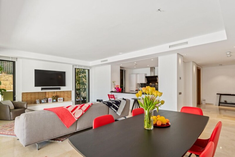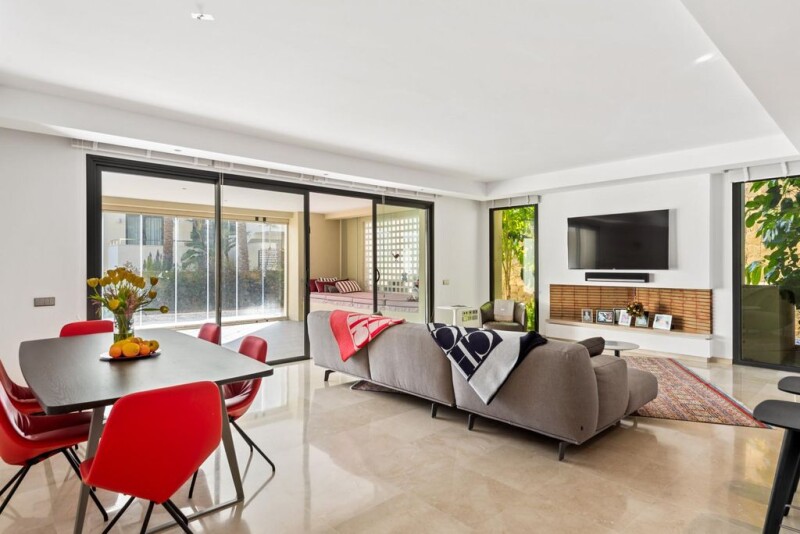 Luxury ground floor apartment in Golden Mile, Marbella A stunning ground floor apartment for sale in Imara, Golden Mile. Set in a well-established and prestigious gated community that offers the best in terms of security and amenities for its residents. The apartment is located in what's considered one of the best areas in Marbella and in Golden Mile, one step from Sierra Blanca and Cascada de Camojan and just 2 kilometers from the beach and all kinds of amenities. The apartment was built to the highest standards and offers a great-size covered terrace with glass curtains, ideal for winter. Inside, there's an open plan and fully fitted kitchen that opens up to the beautiful and luminous living room and dining area. The master bedroom has a great and fabulous bathroom and access to the exteriors. Worth mentioning is a beautiful fireplace, brand new air conditioning and underfloor heating in the bathrooms. As a resident of Imara, you will enjoy luxury amenities like landscaped gardens, swimming pools, sauna, and steam bath.