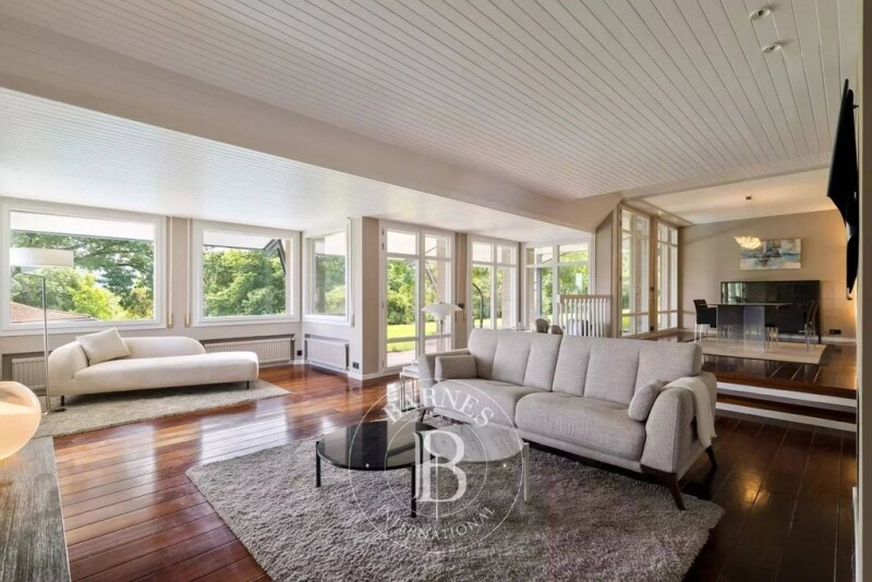 A stunning one-floor house, situated in the exclusive residential area of Jaitzubia, a prestigious neighbourhood known for its picturesque location and proximity to the golf course. The property of 270m2 offers a seamless blend of classic colonial-influenced architecture and modern features. Recently subjected to a full reconstruction, this home boasts impeccable design and meticulous attention to detail. Upon entering, a vast living area with an open space plan, seamlessly flowing from the living room to the dining area. This expansive space is flooded with natural light, courtesy of large windows that provide breathtaking views of the surrounding greenery. The house features three bedrooms, ensuring ample space for family and guests. Two ensuite bedrooms, one of which featuring its own office and a screened porch. The fully equipped kitchen, complete with top-of-the-line appliances, a generous amount of storage space and a central island created a functional space. The extensive outdoor area with a pool creates a serene and peaceful atmosphere. The residential area of Jaiztubia offers a harmonious blend of natural beauty and luxury. It is an attractive destination for golf enthusiasts and individuals looking for a peaceful and upscale residential community. The property is situated close to the nearby towns of Hondarribia and San Sebastian, as well as to the French Basque Country.