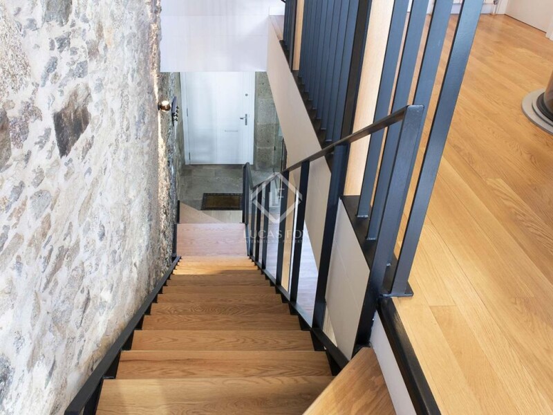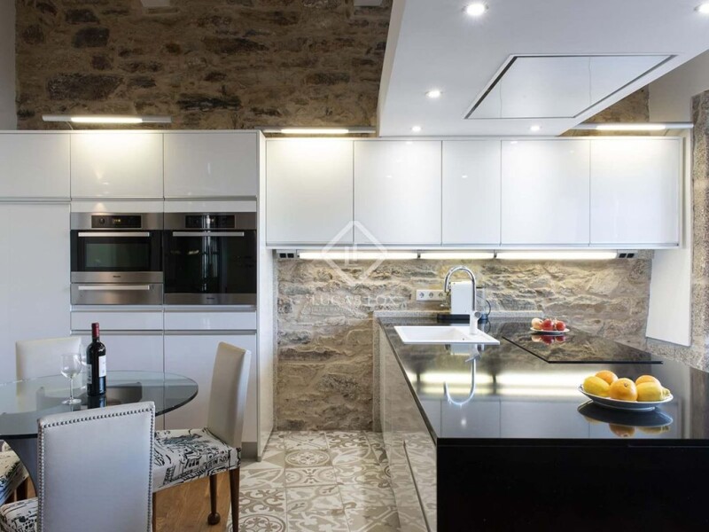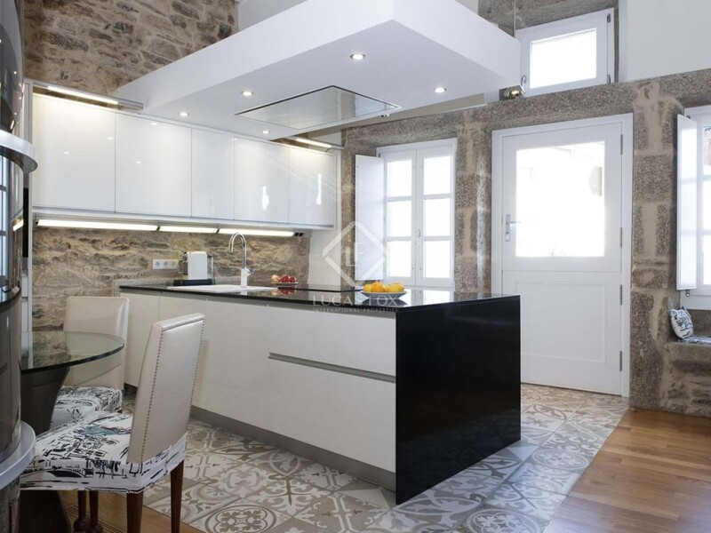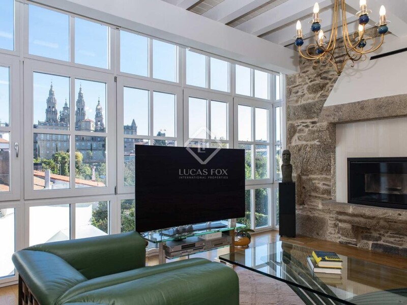 This fantastic townhouse is located in the monumental area of Santiago de Compostela. The property offers an excellent layout distributed over three levels, a private garden section with stunning cathedral views. Situated within a short walking distance of approximately 5 minutes to the city centre and Plaza de Obradoiro. It has a built area of 211 m² with a private garden measuring 139 m² distributed over three floors, with three good-size bedrooms. Renovated with excellent taste, the renovation has kept the old style of the house without sacrificing a modern design and layout. The main floor features oak wood flooring throughout, with exposed stone areas in the dining area and kitchen section and elements such as high ceilings, with good quality wooden beams. The kitchen section offers top-of-the-line appliances and a marble-finished centre island with views of the garden area and cathedral. This level provides a pellet-burning fireplace. The house offers all comforts and is adapted to modern life: equipped with Italian finished sanitary, renovated electrical installation and plumbing, double-glazed windows, and shutters. It is made of aluminium that respects the style of the house. From the street, we enter the house via large old wooden doors with a lot of style and charm. The entrance leads to the dining room, down the hall to the kitchen, which gives access to the private garden. To the right side, there is a modern staircase made of cast iron and high-quality wood with a fully transparent glass lift that connects the three floors. On the first floor, we find the living room with a fireplace overlooking the interior garden section and views of the cathedral. Opposite, we have a bathroom and two double-sized bedrooms with a balcony overlooking the main street. The top floor has the master bedroom with a dressing area, a small linen room, a spacious bathroom, a shower, and a bathtub. An ideal home for anyone who wants to live in style and comfort and within walking distance to lovely restaurants and the old town of Santiago de Compostela.