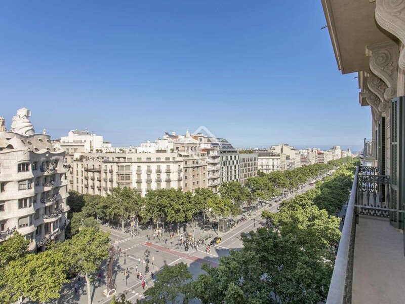 This apartment is in a very special position on a very special boulevard in Barcelona, offering space and luxury right in the heart of the city's most exclusive central neighbourhood. The fifth floor position makes it easy to rise above the bustling streets below, enjoy an oasis of calm and take in a perfect view of your very special neighbours, as well as across town and even to the sea. This building has excellent architectural provenance, was originally built in 1850 and retains plenty of neoclassical and modernist features. It was originally owned by the Condes de Brias, and was completely renovated to its current impeccable modern standards in 2003. The level of fit and finish is excellent throughout this chic apartment. The standout reception room has triple balconies overlooking Passeig de Gràcia, and leads into the bright, minimalist kitchen and dining area plus 4 bedrooms, all with fitted wardrobes, and 3 bathrooms. A combination of white paint and rich parquet floors give the property an easy sense of space, while being on a high floor harnesses the sunlight and floods the apartment with natural light. Whether as a home or an investment, this apartment is an area of timeless appeal and permanent demand.