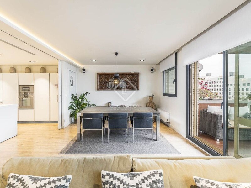This beautiful, recently renovated apartment is located in a very prominent building opposite the L'illa shopping centre and next to the Olga Sacharoff gardens. It stands out for the high-quality materials used in the renovation, as well as its combination of noble elements and the latest technology. The property is optimally distributed, as it distinguishes the day area . Upon entering, a large open-plan space links the main rooms of the property: a spacious living room next to a huge and comfortable dining room with views of the terrace. A large kitchen diner semi-open to the dining room includes a separate utility area and a guest toilet hidden behind the entrance hall. All this completes the day area. Crossing a swing door, we enter the bedroom area. First, we see a versatile room that can be used as an study or a play area. The en-suite bedroom, with a bathroom and private terrace, offers views of the Olga Sacharoff gardens. Finally, we have two double bedrooms that share a full bathroom and an area with very large built-in wardrobes . The interior design of this area is thought out down to the last detail. The property has high quality finishes, such as a Bulthaup kitchen, Gaggenau appliances , double thermal break enclosures, LED lighting, home automation control (air conditioning, heating, blinds or lights), projector and cinema screen. La Finca has a daytime concierge service, two parking spaces (one of them large) and a storage room, as well as a service entrance and a freight elevator. Do not hesitate to visit this property with the help of our agents!.