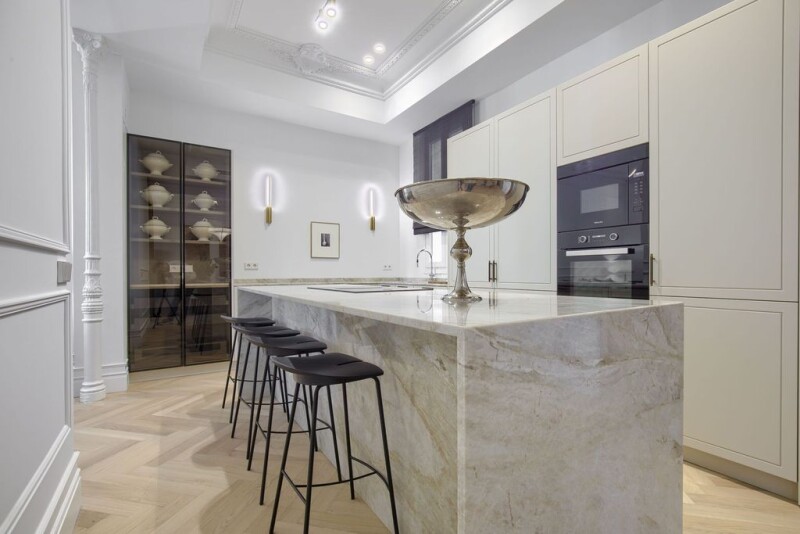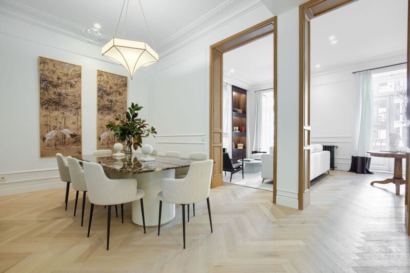 Flat located in the emblematic Salamanca-Recoletos neighborhood, with high ceilings of 3.43 meters and excellent qualities. Completely renovated and furnished, it has three spacious bedrooms with en-suite bathrooms, as well as a fourth service room also with its own bathroom. It has two living rooms with a bay window and two balconies, a separate dining room, a fully equipped kitchen and a laundry area.