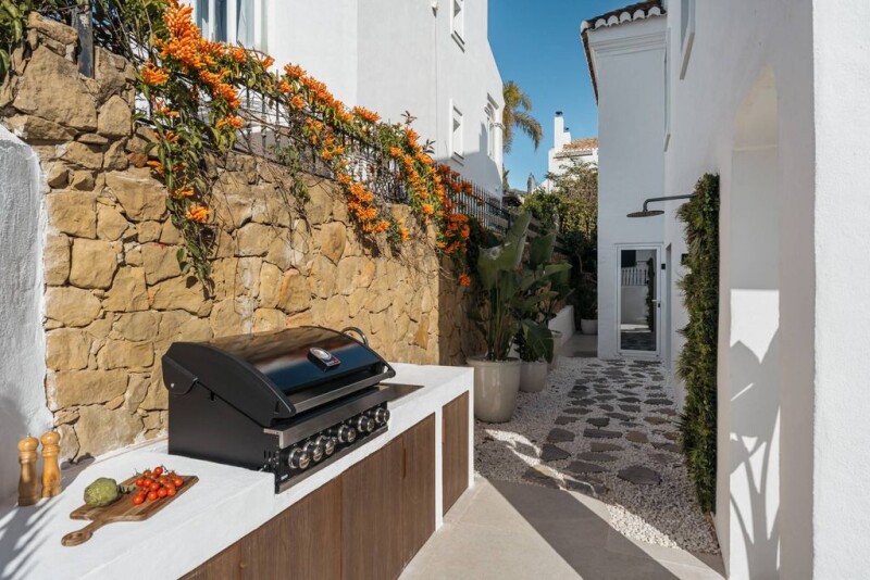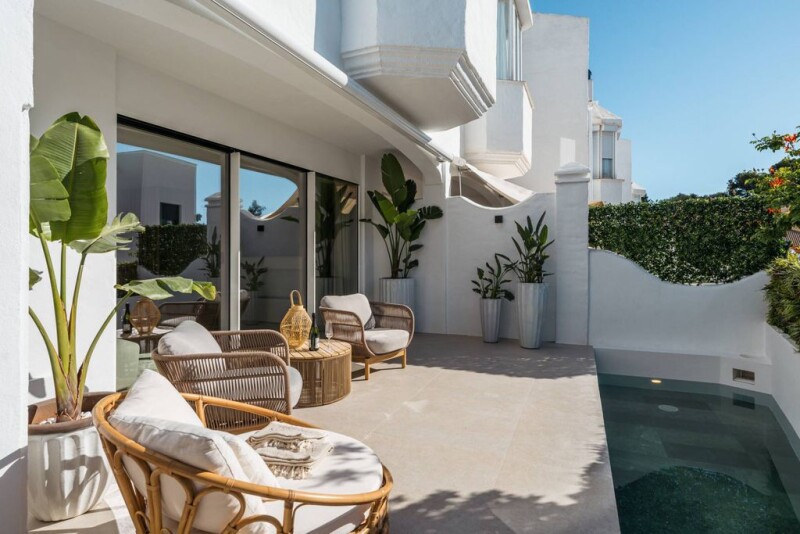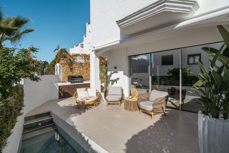 Sophisticated modern townhouse with luxury amenities on Marbella’s Golden Mile This meticulously renovated townhouse represents the pinnacle of luxury living in the exclusive Altos de Puente Romano on Marbella’s Golden Mile. With four spacious bedrooms and four-and-a-half designer bathrooms, this property spans an impressive 352 m², perfectly combining contemporary design and unparalleled comfort. The open-plan layout boasts abundant natural light, with a state-of-the-art kitchen featuring premium appliances, flowing into an elegant dining and lounge area. The master suite offers a private sanctuary, complete with a luxurious en-suite bathroom, walk-in wardrobe, and a balcony with partial sea views. The private outdoor terrace, with a plunge pool, creates an idyllic space for relaxation and entertaining. A private gym, a cinema room, and secure basement parking further enhance the property’s allure. Located within a gated community with 24-hour security, this home provides peace of mind while being moments from Marbella’s finest beaches, upscale dining such as Nobu and Bibo by Dani García, luxury shopping, and top-tier international schools. Maison Vanguard is the ultimate residence for those seeking a sophisticated lifestyle in one of Marbella’s most desirable locations.