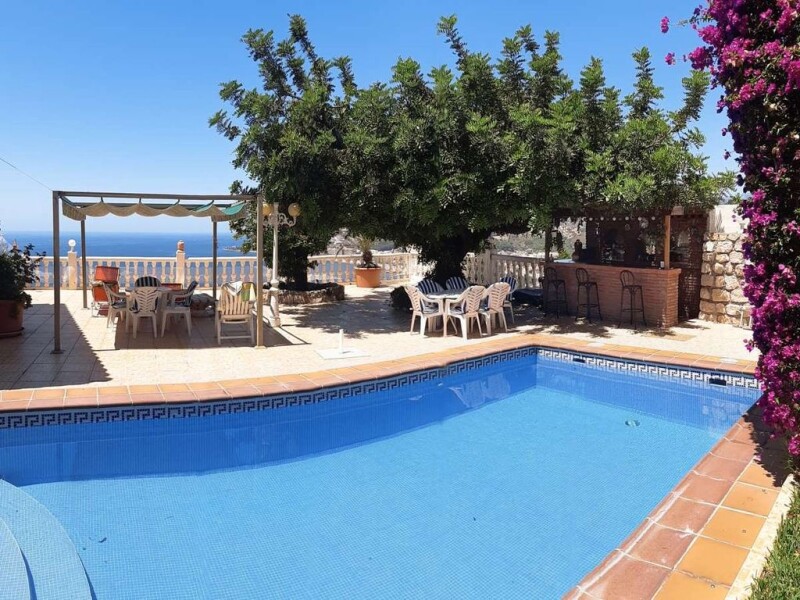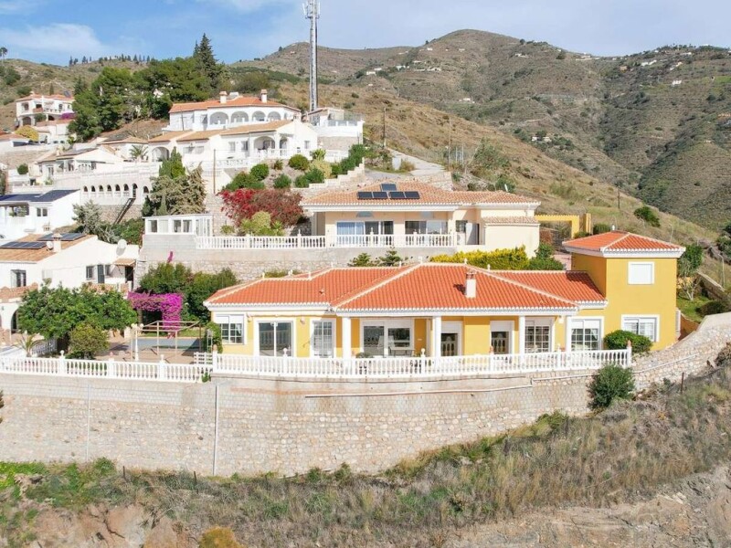 This nice and well maintained, 4 bedrooms / 4-bathrooms (2 of which are ensuite) villa is unique because it is built all on one level. Additionally, the pool and terrace are on the same level as the villa so there are no steps to worry about. From throughout the property, you can enjoy breathtaking sea and mountains views. It was built in 2001, and it has high quality finishes. This villa is set on a plot of around 960 m2 and it faces south so you can enjoy the sun all day long and the beautiful sunsets. Inside there is a bright and airy, open plan lounge with a sitting room, a dining area, a fireplace and a fully fitted kitchen. From the main living, there is a good-sized terrace, part of which is covered, and a swimming pool. There is hot and cold air conditioning in the house. There is also a private garage. The villa is located in a small community near the beach and is less than a 10-minute drive away to Almuñécar.