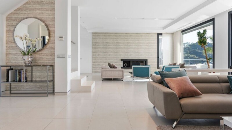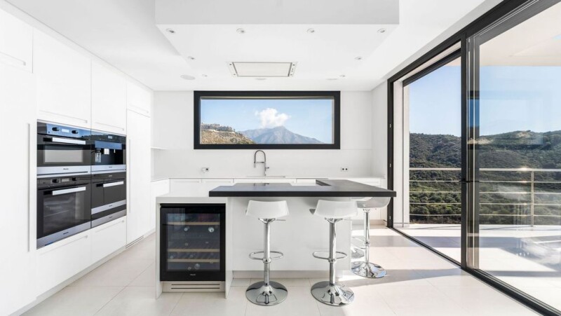 BlueLife Realty presents for sale this contemporary villa emphasizing comfort and privacy. Located in a gated and secure community, just 2 minutes from Nueva Andalucia, 10 minutes from San Pedro de Alcántara and Puerto Banus, and 15 minutes from the exclusive Puente Romano. Despite its proximity to a variety of restaurants and activities, Villa Lea offers the tranquility and seclusion of a private retreat. Upon entry, you are greeted by a spacious open plan area with high ceilings that seamlessly connects two living rooms, each equipped with a built-in TV and stove, to a dining room with access to the kitchen and a separate laundry room. The ground floor also has a double bedroom with dressing room and en-suite bathroom, plus an additional guest bathroom. Each room on this level offers direct access to a vast terrace offering panoramic views of the sea and the mountains, reinforcing the feeling of openness and integration with the natural environment. The property's private garden is a highlight, with a large hot water swimming pool that invites you to soak up the spectacular views. Heading upstairs you will find three double bedrooms, all offering dressing rooms and en suite bathrooms. The master bedroom, in particular, impresses with its generous dimensions and private terrace overlooking the sea, promising a serene and luxurious personal space. The basement houses several storage rooms and an underground garage providing enough space for two large vehicles, complemented by an additional carport at the entrance to the property for guest parking. Below the swimming pool is an unexploited space with potential for conversion into a fifth bedroom, cinema or gym, offering further customization to meet the owner's lifestyle needs.